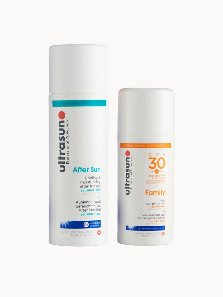 Comforting care for sun-loved skin, this suncare duo delivers a complete routine that protects, soothes and restores. With high-performance yet gentle formulas for delicate skin, it pairs all-day UV defence with a refreshing after-sun treatment to calm, hydrate and replenish for a healthy, post-sun glow. Set Contents: Ultrasun Family SPF 30 Super Sensitive 150ml This velvety cream wraps the skin in comfort, creating a weightless veil of protection that melts in like second skin, leaving it feeling calm, cool and radiantly cared for. Ultrasun Aftersun 150ml Deliver instant, quenching hydration with this silky after sun, designed to soothe from the very first touch. Its light, airy texture glides over sun-warmed skin and sinks in effortlessly, leaving no residue.