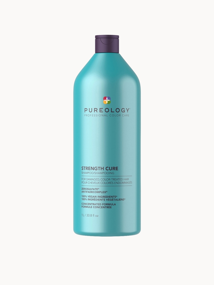 Fortify stressed, colour-treated hair with the Pureology Strength Cure Shampoo. This powerhouse shampoo helps restore damaged, breakage-prone tresses to a healthy-looking state while treating them to a thorough cleanse. Upgraded with a blend of nurturing ingredients, the shampoo coats every strand in its luxurious, antioxidant-rich formula. Astaxanthin releases revitalising properties, helping to invigorate and strengthen the look of weakened hair. Pureology’s patented Antifade Complex® is designed to be kind to chemically-processed tresses, meaning it won’t dull the vibrancy of your existing colour. Sunflower Seed Oil acts as a UV filter while Vitamin E fights against colour-compromising environmental aggressors. The vegan shampoo seeks to strengthen brittle strands for a supple, resilient finish. Purging the hair of lingering dirt and grime, this Pureology hair cleanser supports strong, bright and silky-smooth locks. Vegan formula.* *Every formula is made without animal products or by-products