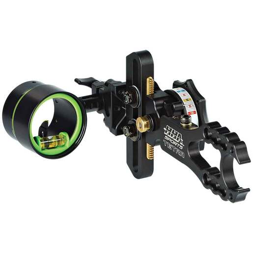 HHA Optimizer Tetra Single Pin Bow Sight - Over two decades of technology come together to provide one of the most versatile, lightweight, and rugged sights available. The Tetra delivers a silky smooth 2.1in of travel on your choice of a fixed frame or dovetail bar. To the yard accuracy with our patented R.D.S. sight tapes and precision windage adjustment provide deadly accuracy in the field and on the range. The quiver-friendly, wheel forward designs make these sights ideal for bowhunters and 3D shooters alike. With 2nd and 3rd axis adjustment and a full line of accessories, the Tetra is destined to take over as the new #1 slider sight on the market today. A two-stage windage adjustment makes sight-in easy and precise. Totally toolless, once the Tetra is mounted to your bow, you can put the wrench set away and make minor adjustments in the field. With laser engraved witness marks and user-friendly adjustment knobs, dialing in is easier than ever before. Scope size is 1 5/8in