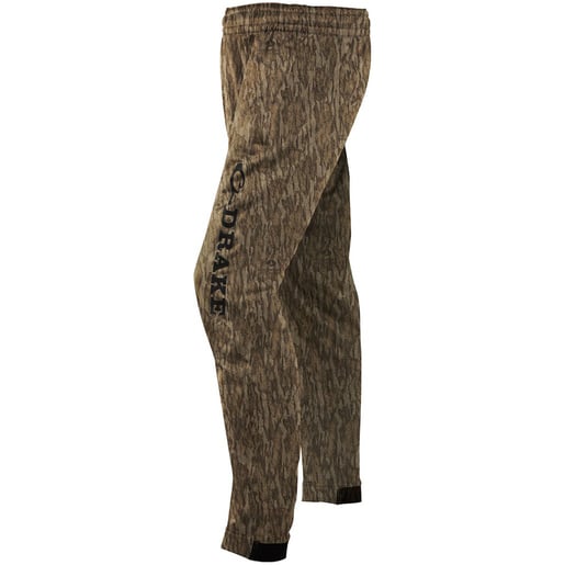Drake Waterfowl Men's Mossy Oak Bottomland Fleece Wader Pant - The Fleece Wader Pant is warm, comfortable, durable, and fits just like your favorite pair of sweat pants, making them ideal for wearing under waders. 100% Polyester Fleece Front handwarmer pockets Elastic waist Snug fit tapered ankles Style: DW1510