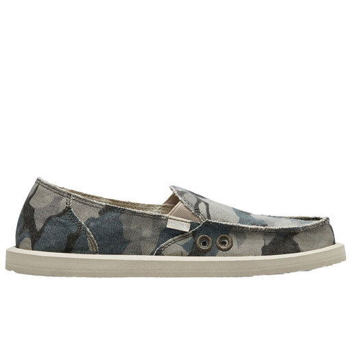 Sanuk Women's Donna Casual Shoes - Go a little sly camouflage style with that award-winning Sidewalk Surfer feeling. 100% Better Cotton Initiative cotton, printed canvas uppers Exposed gore, moc-toe detailing 100% Cotton canvas lining Molded EVA footbeds with antimicrobial additive EVA midsoles 47% Recylced EVA foam, 6% straw and 47 % Virgin rubber outsoles with Happy U tread 100% GRS Certified RPET Sanuk Flag woven label Vegan shoe Packable shoes Style: 88276