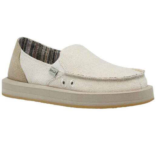 Sanuk Women's Donna ST Casual Shoes - A laidback yet progressive amalgamation of hemp, cotton, wool, jute, responsibly-sourced suede, polyester, and gore, featuring a soft blanket lining. Exposed gore, Moc-toe detailing High rebound soft-top foam footbed, suede-lined footbed, antimicrobial additive EVA midsole Faux crepe rubber outsole 100% GRS-certified RPET Sanuk flag woven label 50% hemp 50% cotton, suede upper 75% recycled polyester 25% elastic gore 80% polyester 20% wool lining 100% Jute outsole cloth Style: 1128472