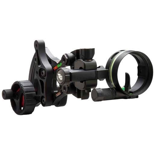 TruGlo Range Rover 1 Pin Bow Sight - Single pin slider sight features an adjustable yardage stop, Zero-In elevation adjustment, and extra long wrapped fiber. Includes over 40 pre-marked yardage tapes and a 2nd and 3rd axis adjustable illuminated level. Adjustable for right and left handed shooters. Toolless yardage lock Clean, circular sight picture with all-metal pin Extra-long, fully-protected wrapped fiber Ultra-smooth movement for easy one-hand adjustment Sight housing accepts 1.87in. scope lens (sold separately) Laser engraved reference markings for windage and elevation adjustments Adjustable end-of-travel stop customizes maximum yardage setting Quiver can be mounted directly to bracket Adjustable quiver mount included Available in left-handed and right-handed models Fine-click windage adjustment Light included