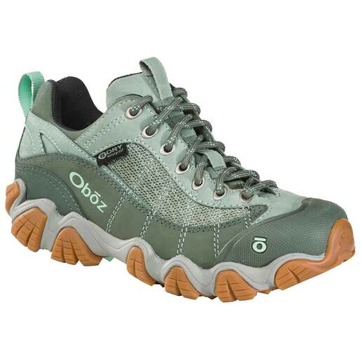 Oboz Women's Firebrand II Waterproof Low Trail Running Shoes - The Firebrand II is built with the women’s specific Sawtooth midsole and outsole, and has the same unbeatable comfort as the Sawtooth II, but in a lower-volume profile. The upper features a mix of leather and air-mesh, and metal eyelets to provide superior fit. Add B-DRY Waterproof technology and this boot is ready for all conditions and all occasions. O FIT Insole molded to match the specific shape and construction of every pair made Sawtooth Midsole features a dual-density EVA midsole that provides cushioning and stability, and a nylon shank that gives added support under foot Sawtooth Outsole has a map molded in the bottom featuring the Sawtooth mountain range near Sun Valley, Idaho B-DRY Waterproof lets sweat escape while keeping moisture out Style: 21302