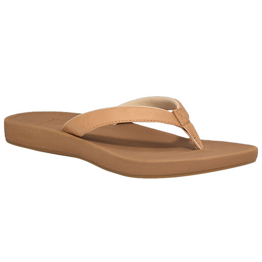 Sanuk Women's Cosmic Shores Flip Flops - Made with soft and squishy water-friendly uppers built for fun in the sun, and contoured footbeds, Cosmic Shores are the perfect style for poolside lounging all summer long. Quick drying, water-friendly synthetic upper strap Recycled, padded, neoprene-like lining for comfortable wear Molded Cosmic H2O EVA footbed featuring 20% BLOOM REVOLVE foam Anatomical heel cupping and arch support Textured footbed and toe bar for better grip in wet conditions Non-marking rubber outsole featuring 50% natural rubber with custom molded wave design to expel water Water-friendly Style: 1156290