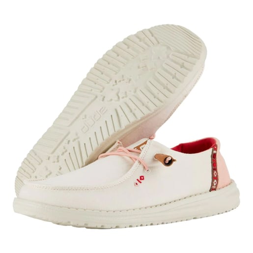 Hey Dude Women's Wendy Chambray Boho Casual Shoes - The Wendy Chambray Boho lets you wear chambray your way. Complete with a waffle textured heel, flexible outsole and colorful webbing details for all-day any-day style. Chambray upper Elastic laces Lightweight outsole Flexible outsole Easy-on system Removable foam insole Style: 40729