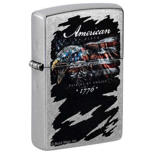 Zippo Buck Wear Lighter - Introducing Buck Wear – an apparel company that brings together pride, patriotism and a love of the outdoors into each of their products. This classic Street Chrome model features an eagle among the words “American by birth, patriot by choice,” in a bold Color Image design. Comes packaged in a gift box. For optimal performance, fill with Zippo lighter fuel. Genuine Zippo windproof lighter with distinctive Zippo "click" All-metal construction; windproof design works virtually anywhere Refillable for a lifetime of use; for optimal performance, use genuine Zippo fuel, flints and wicks Made in USA; Lifetime Manufacturer guarantee Fuel: Zippo lighter fuel (sold separately) Lighter Specs: Height: 2.25in Width: 0.5in Depth: 1.5in Weight: 2.0oz