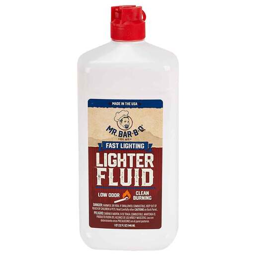 Mr. Bar-B-Q 32oz Lighter Fluid - The Mr. Bar-B-Q fast lighting lighter fluid is perfect for starting both charcoal and wood fires. It’s very clean burning and low odor, so will not leave a horrible residue on charcoal and grills nor leave a foul taste on your food. The safety cap on the bottle helps to avoid spillage and leaking.