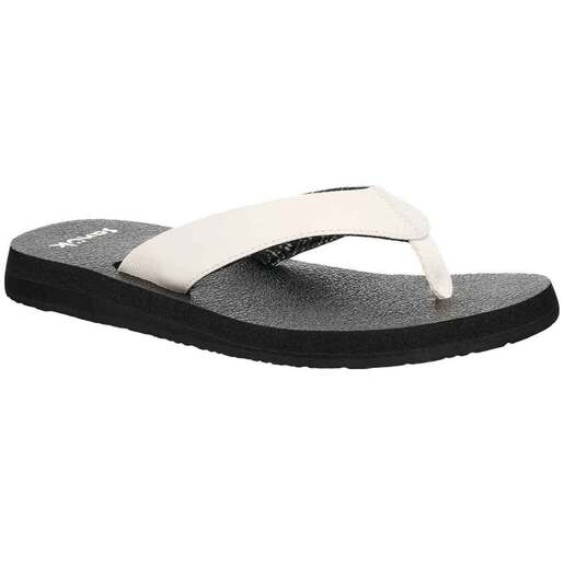 Sanuk Women's Yoga Mat II Flip Flops - The Yoga Mat sandal combines comfort and style with footbeds crafted from real yoga mat-erials for a soft, supportive om-mazing feel. Travel-friendly and lightweight, these sandals are perfect for tossing in your bag and heading out on your next adventure. Wave printed jersey lining The original memory foam Yoga Mat footbed that molds to your foot for instantly Om-mazing comfort Custom Happy U wave tread sponge rubber outsole made with 53% recycled material Style: 1169712