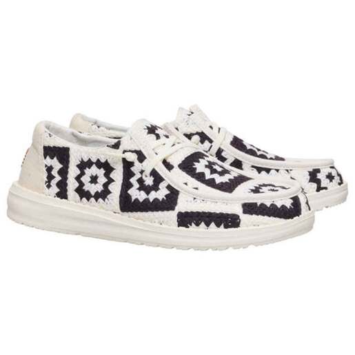 Hey Dude Women's Wendy Cottage Crochet Casual Shoes - Introducing the Wendy Cottage Crochet, a dream for comfort and charm. An embroidered crochet upper wraps your foot in style, while a cushy, comfy removable EVA foam-filled insole keeps you in plush comfort. Grandma chic vibes meet easy-on, breezy bliss for the ultimate cottagecore dream. Embroidered crochet upper with chambray heel Textile lining Elastic laces Easy-on system Travel ready Removable foam insole Lightweight flexible outsole Relaxed Fit: Ample roominess allows for laid-back, easygoing feel Style: 43109