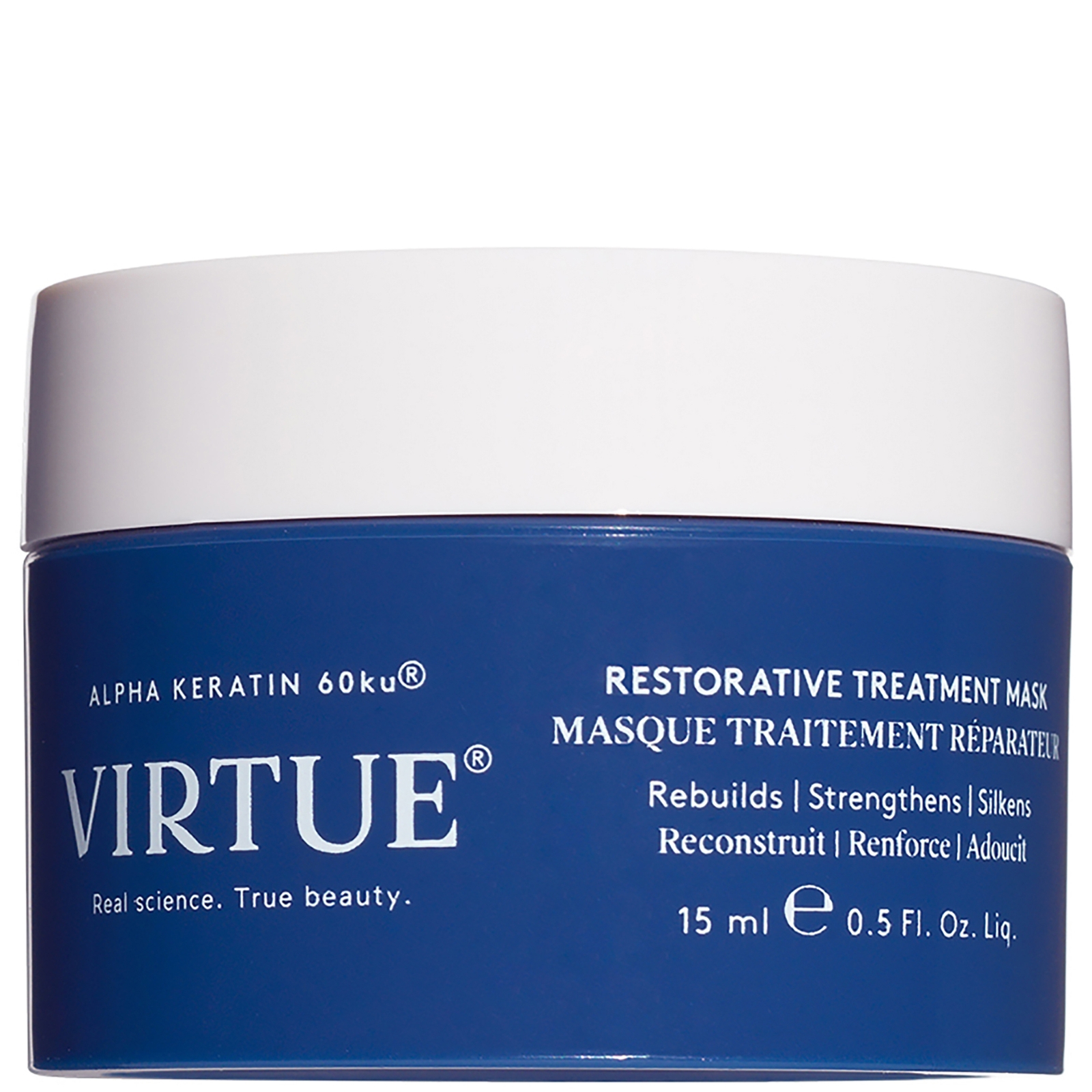 Transform hair's health in 3 minutes with the ultra-nourishing, super-strengthening mask made to treat every hair type. Virtue® Restorative Treatment Mask actively rehabilitates all hair types in need of extra care for an instant infusion of shine, moisture, and resiliency without weighing it down. Infused with Virtue's exclusive complex that includes Alpha Keratin 60ku®, this product delivers an immediate and intense hydrating and conditioning boost. The result? Silky- soft hair that's immediately reinvigorated with health and nourishment. | VIRTUE Restorative Treatment Mask, 0. 5fl. oz | Dermstore