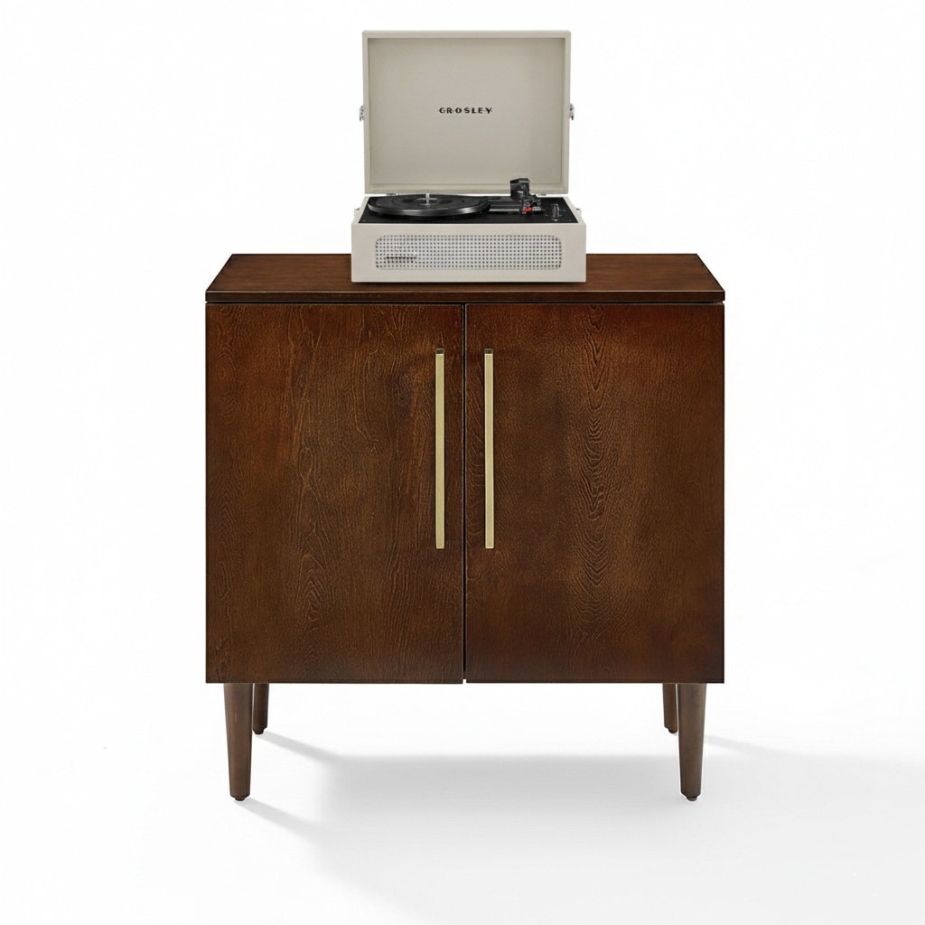The Everett Storage Cabinet is the perfect solution for your small space storage needs. Adding mid-century modern style to any room, this small accent cabinet features round tapered legs and classic bar hardware.