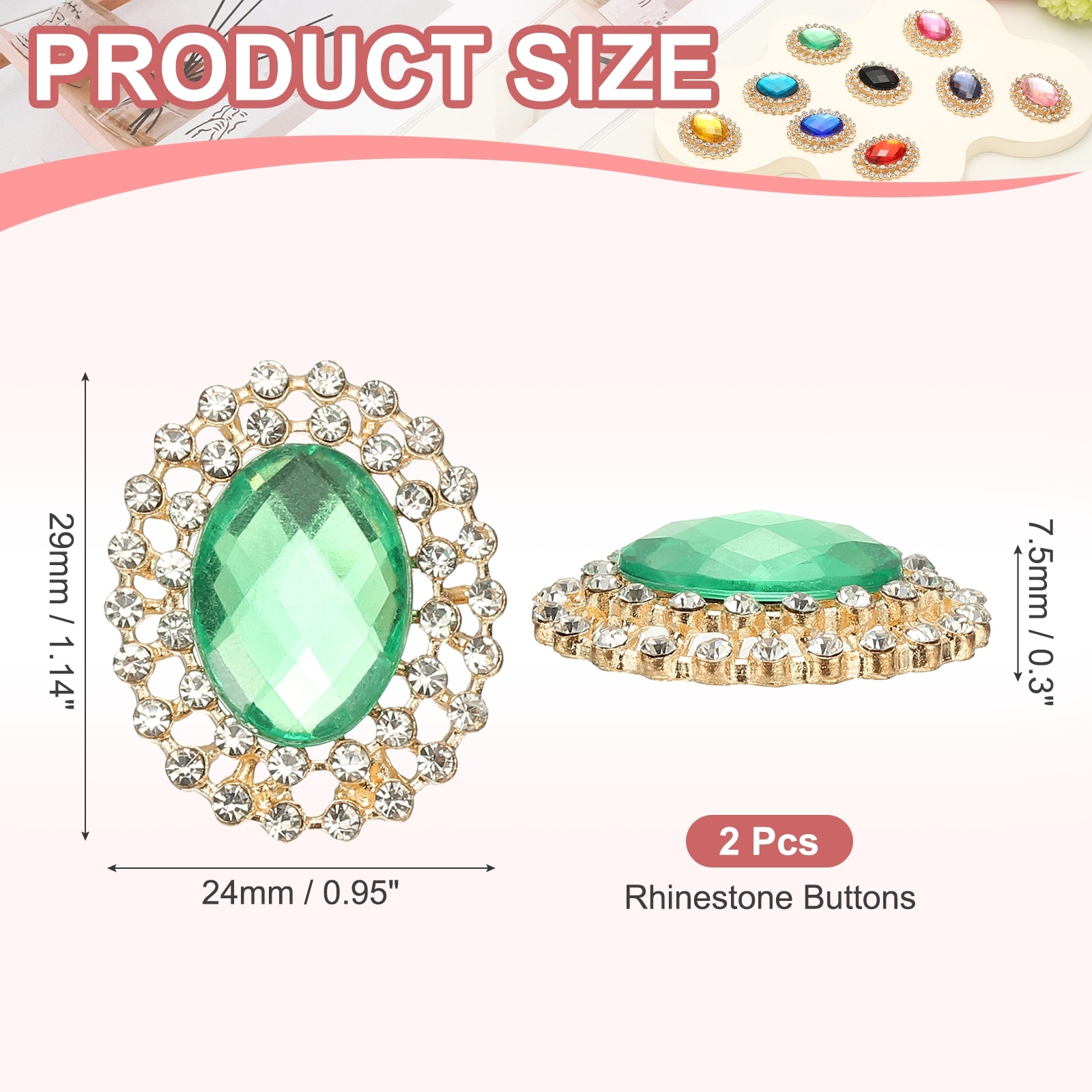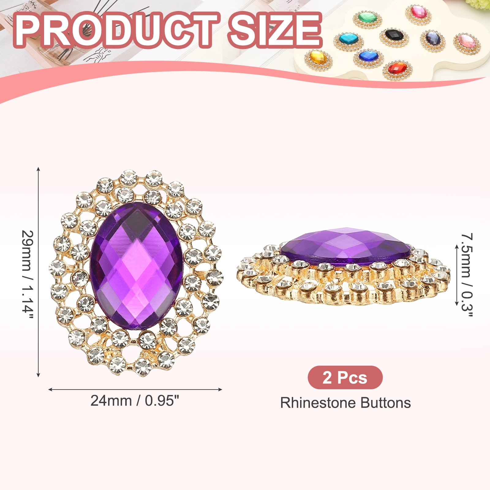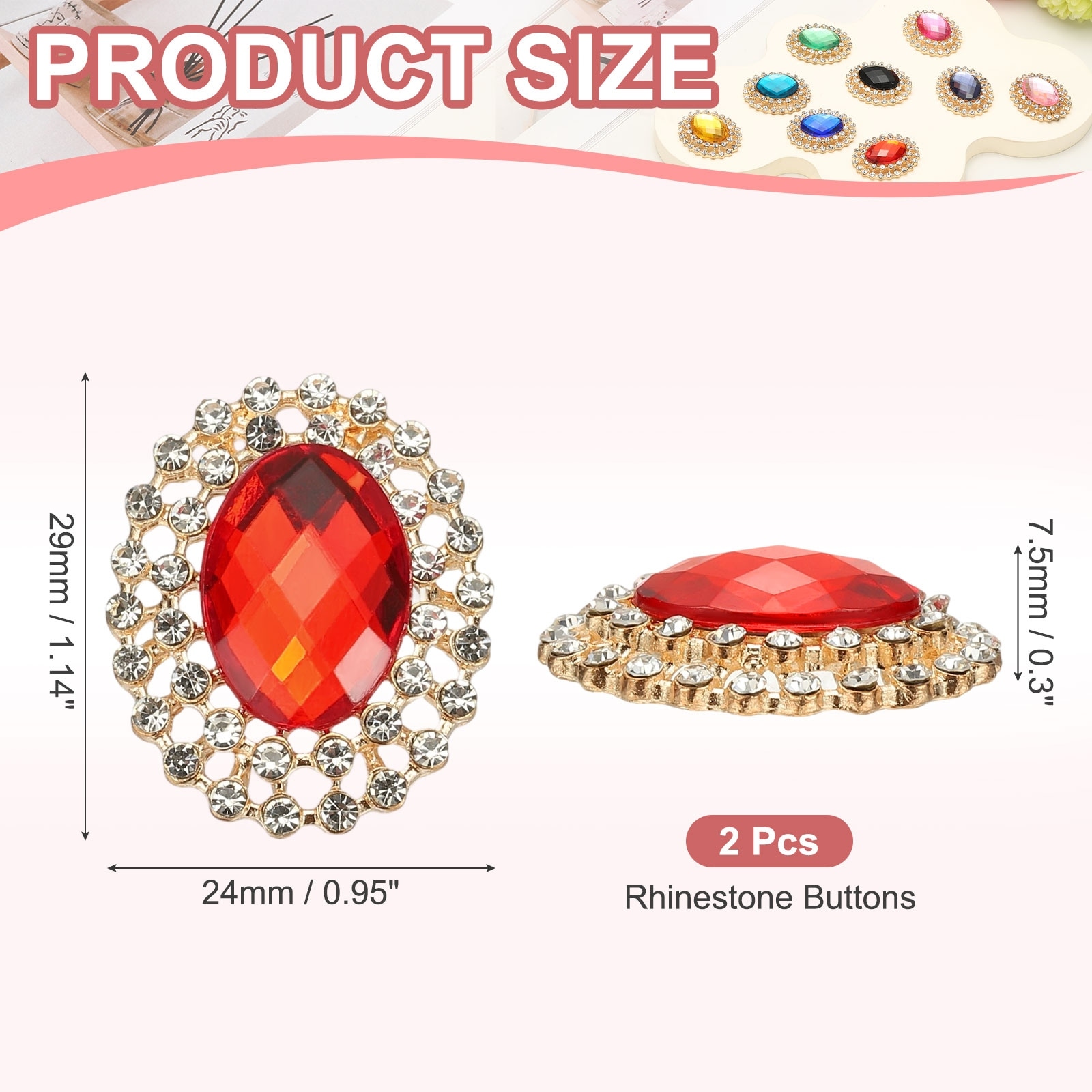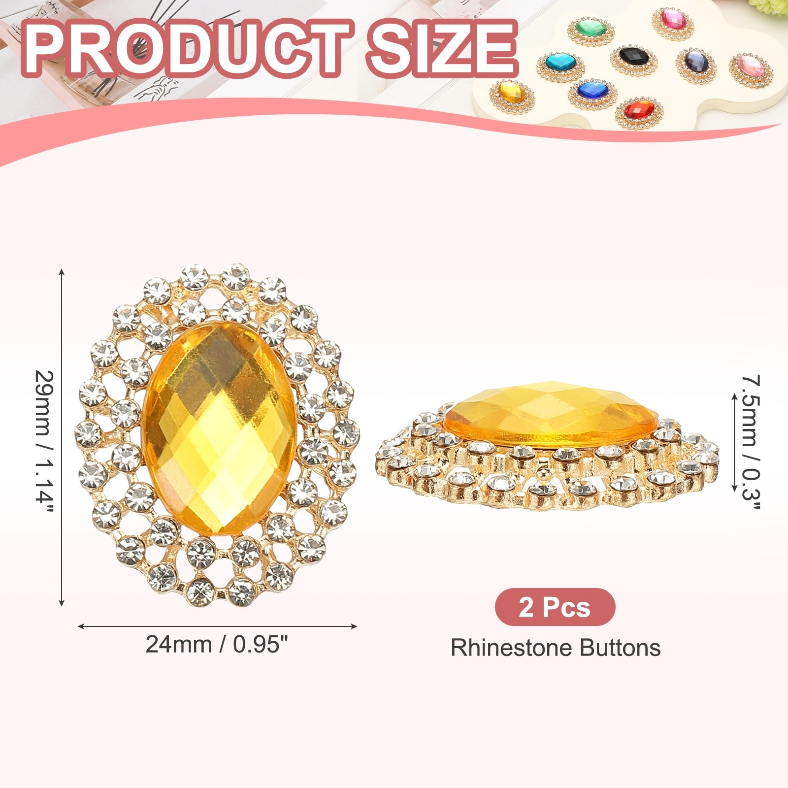 2Pcs Rhinestone Buttons, Rhinestone Buttons for Clothing, Black