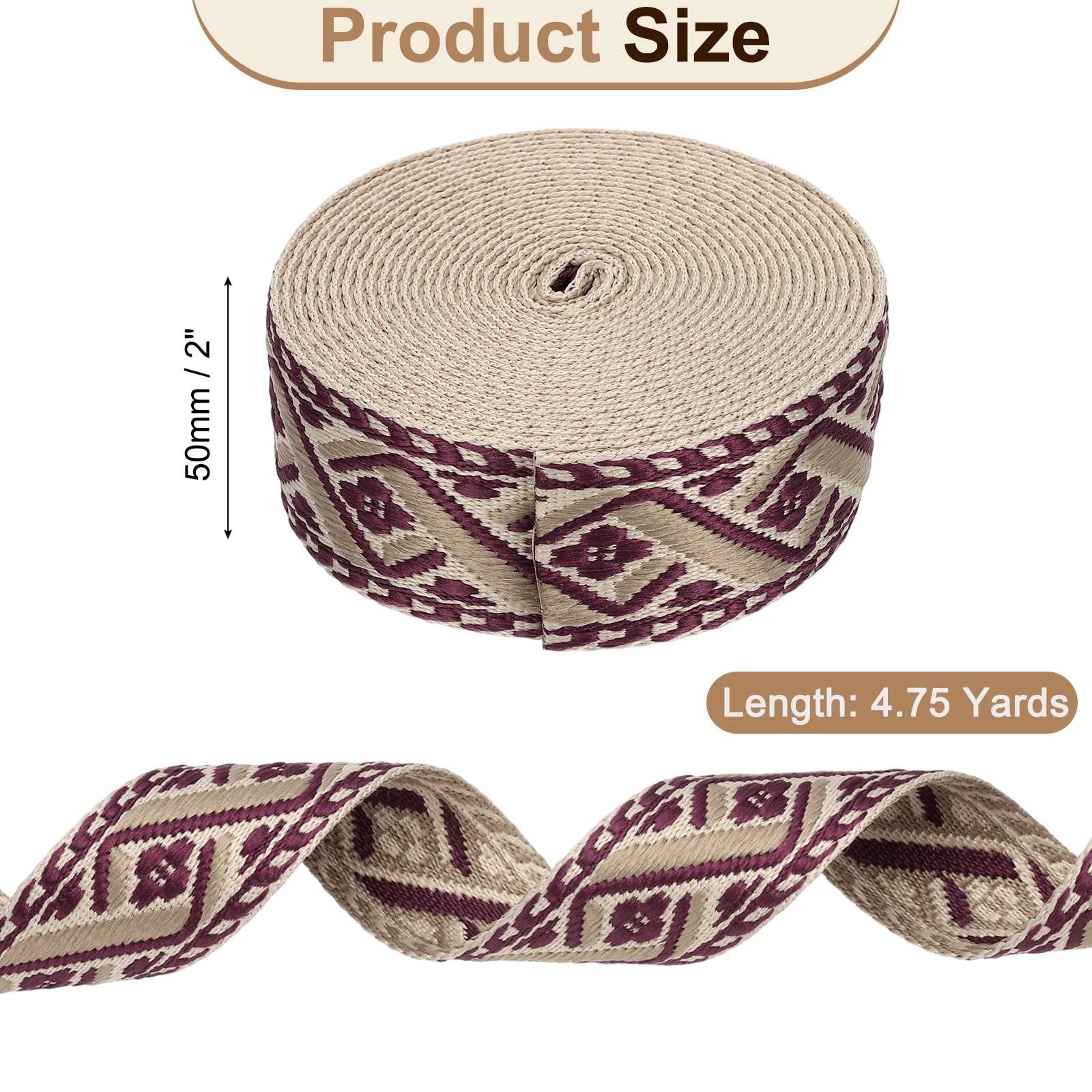 Cotton Webbing Strap Jacquard Webbing Ribbon Embroidery Polyester Webbing Straps Purse Strap Belt for Purse - 4.75Yards x 50mm