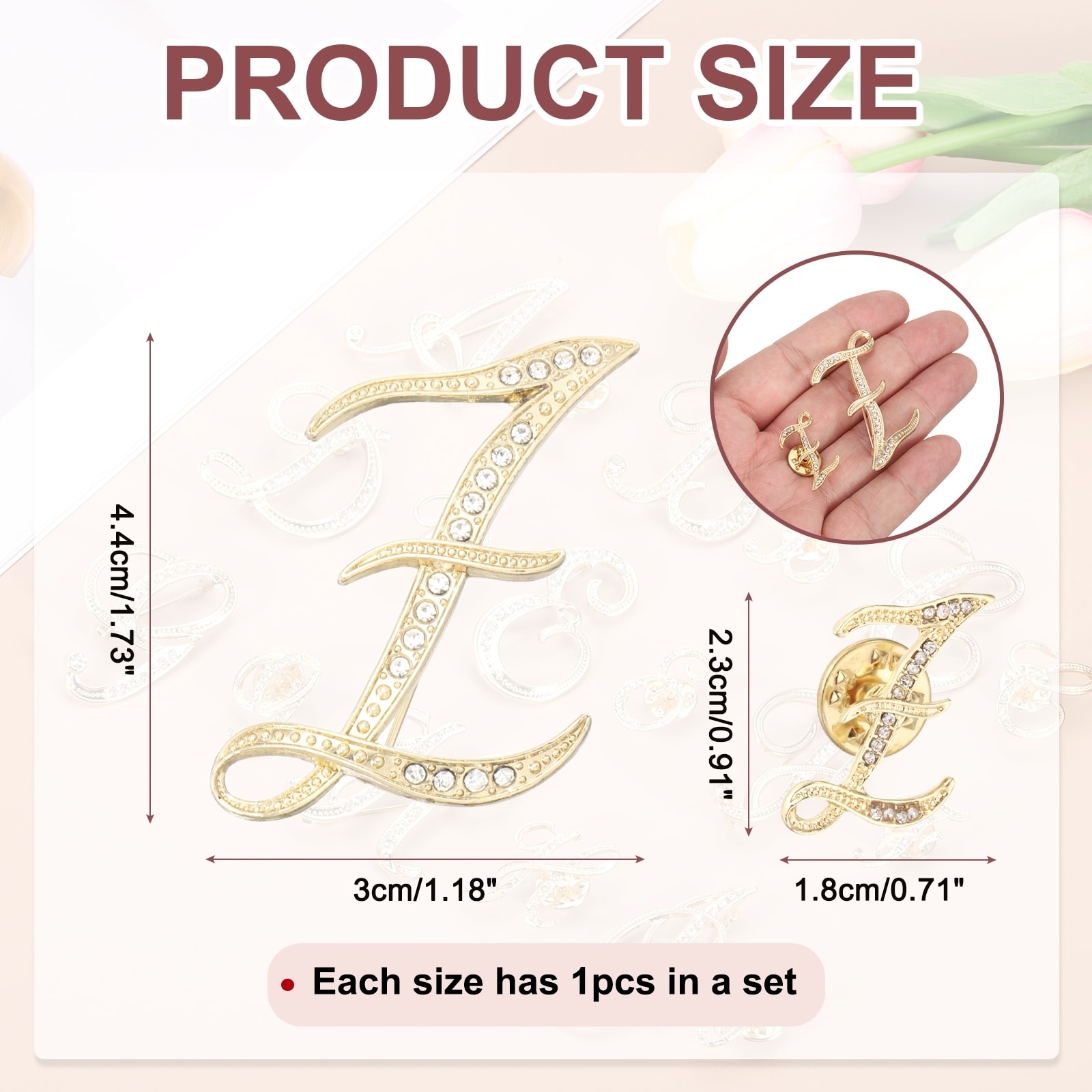 Rhinestone Letter Brooch Pins, Initial Rhinestone Alphabet Letter Lapel Badges Pin for Women Men Suits Dress Coat - Gold Tone