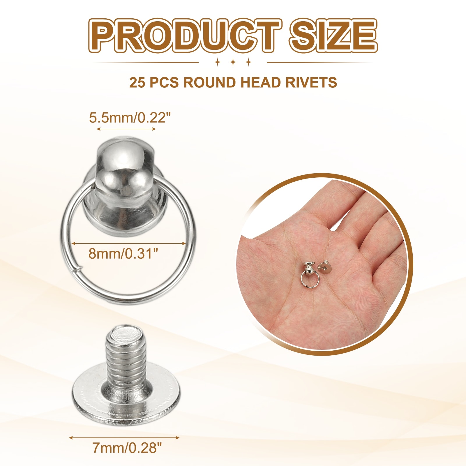Screwback Round Head Rivet with Single Ring, Leather Rivet Kit Metal Handmade Purse Bag Belt Hardware Accessory