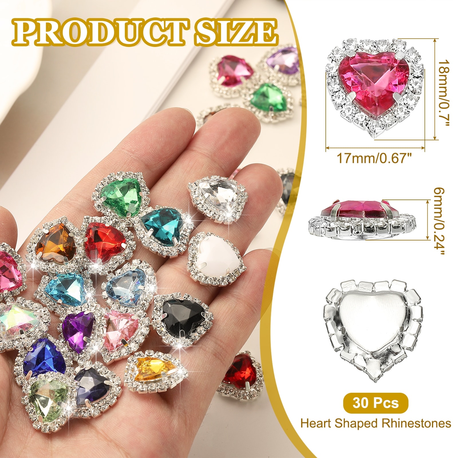 PCS Heart Rhinestones, Sew on Heart Rhinestones Buttons Crystal