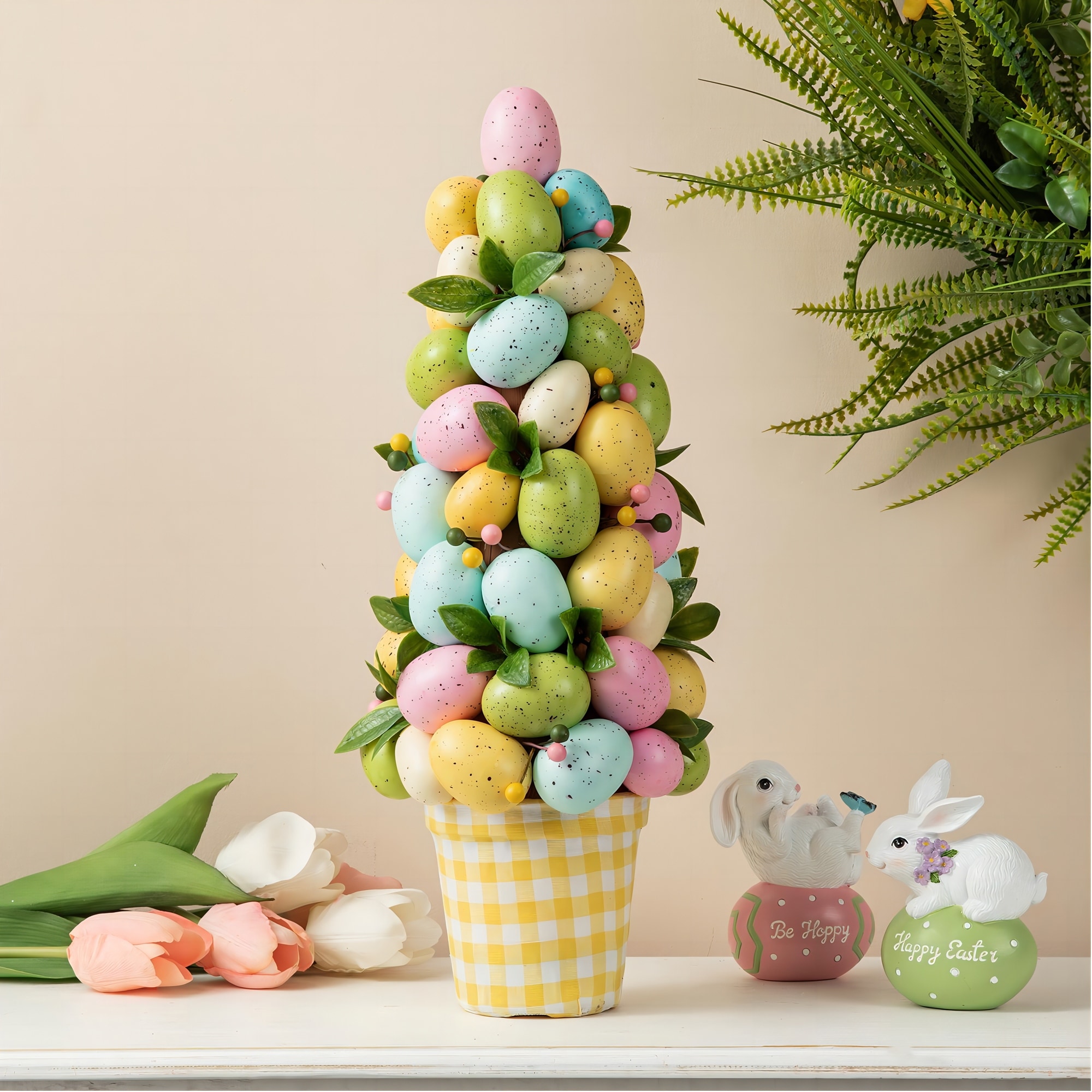 Glitzhome 16"H Multicolor Easter Egg Table Tree Decor for Spring Party Supplies
