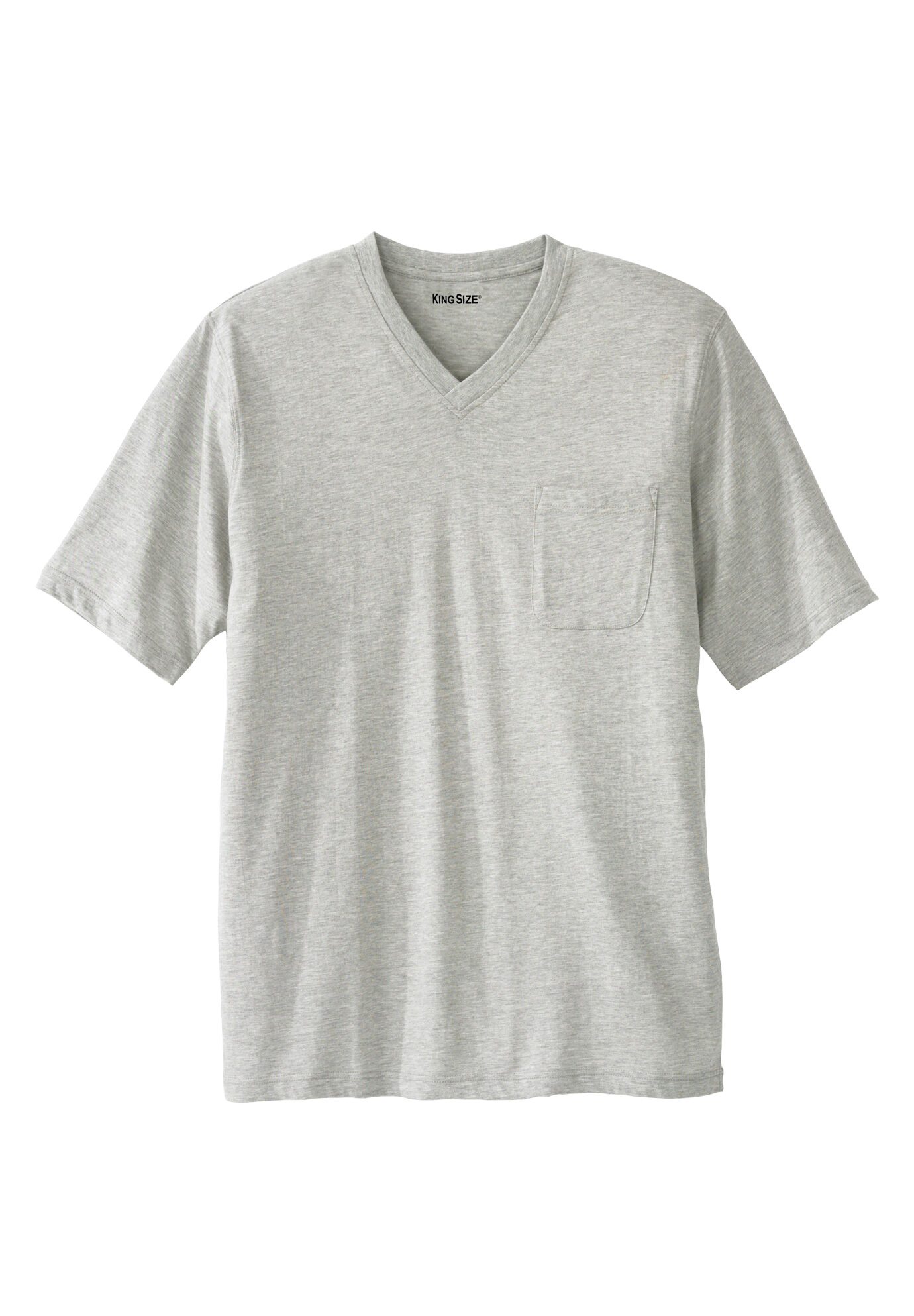 Men’s Big & Tall Shrink-Less Lightweight V-Neck Pocket T-Shirt by KingSize in Heather Grey (Size 3XL)