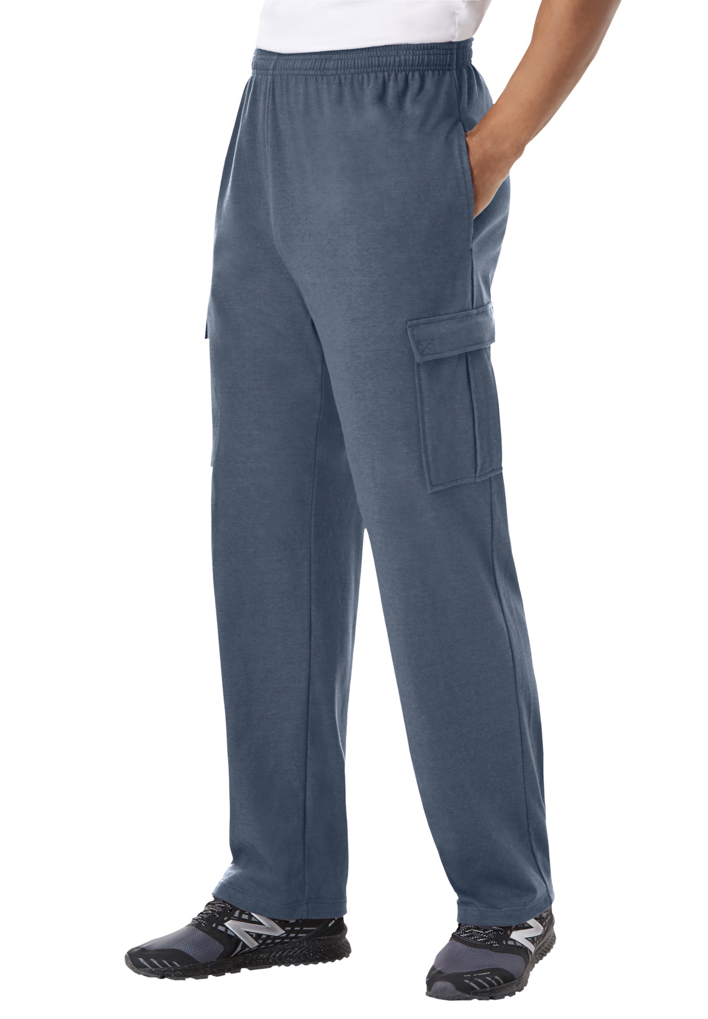 Men’s Big & Tall Lightweight Jersey Cargo Sweatpants by KingSize in Heather Slate Blue (Size 6XL)