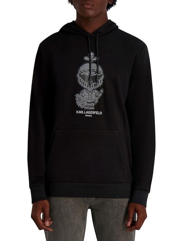 Broken Glass Graphic Cotton-Blend Hoodie - Black - Karl Lagerfeld Sweats