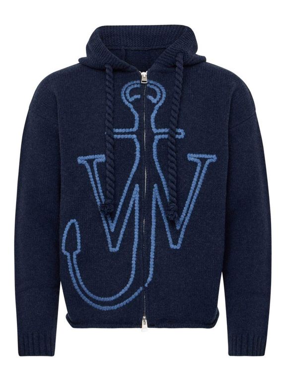 Zip-Up Hooded Sweater With Contrasting Logo - Blue - J.W. Anderson Sweats