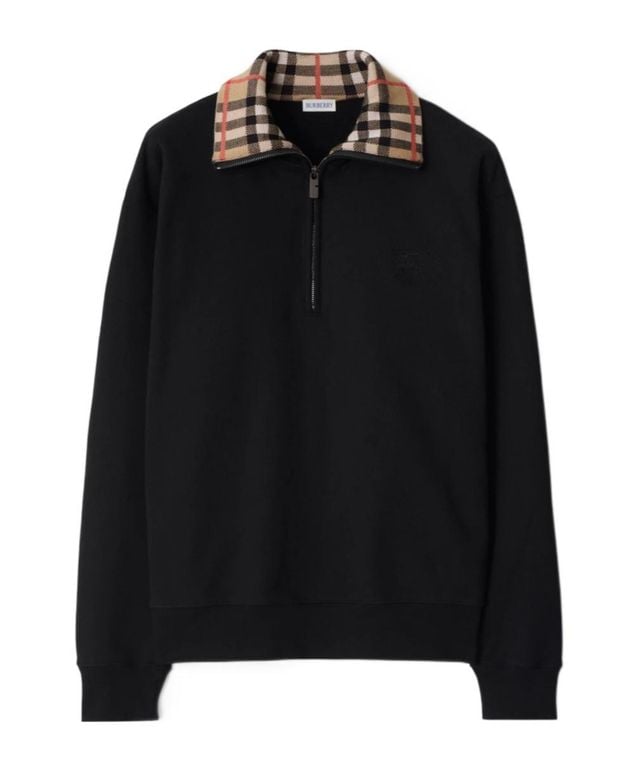 Checked-Collar Half-Zip Sweatshirt - Black - Burberry Sweats
