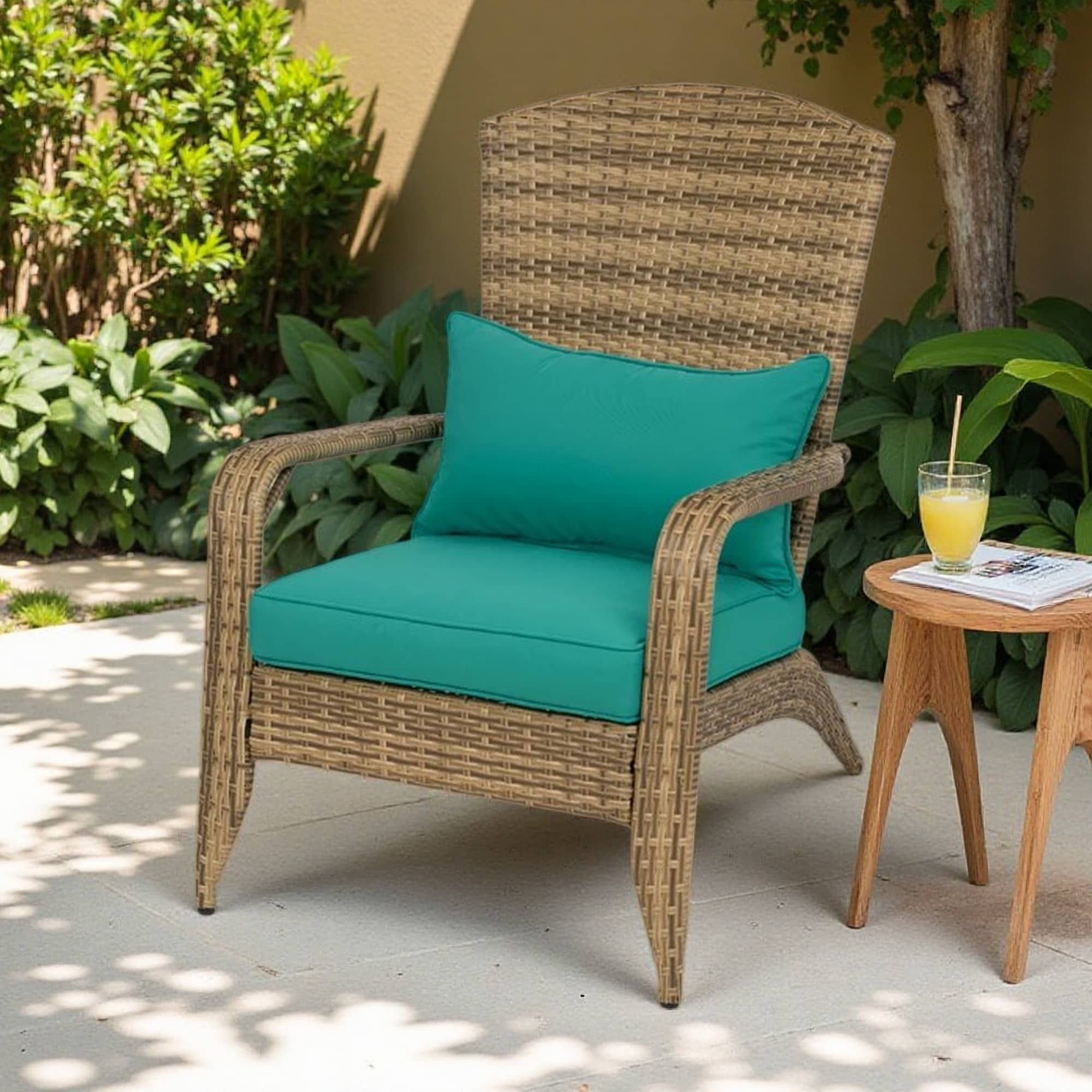 35"H Tall Curved Backrest Patio Adirondack Chair - Rattan Wicker Chair with Soft Cushions and Steel Frame