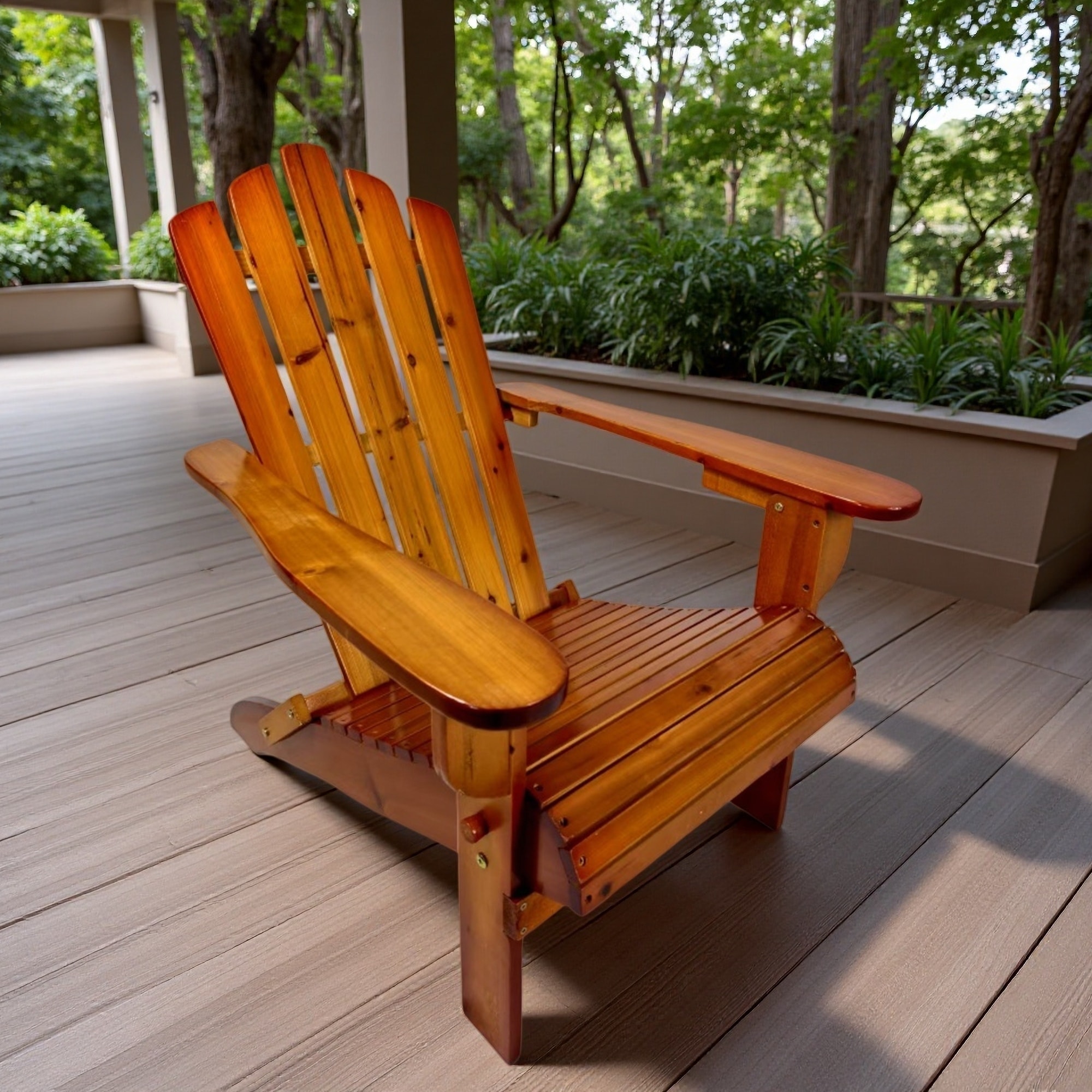 36.6"H Foldable 250lbs Weight Limit Wood Adirondack Chair - Versatile Indoor/Outdoor Seating with Wide Seat & Armrests in OAK