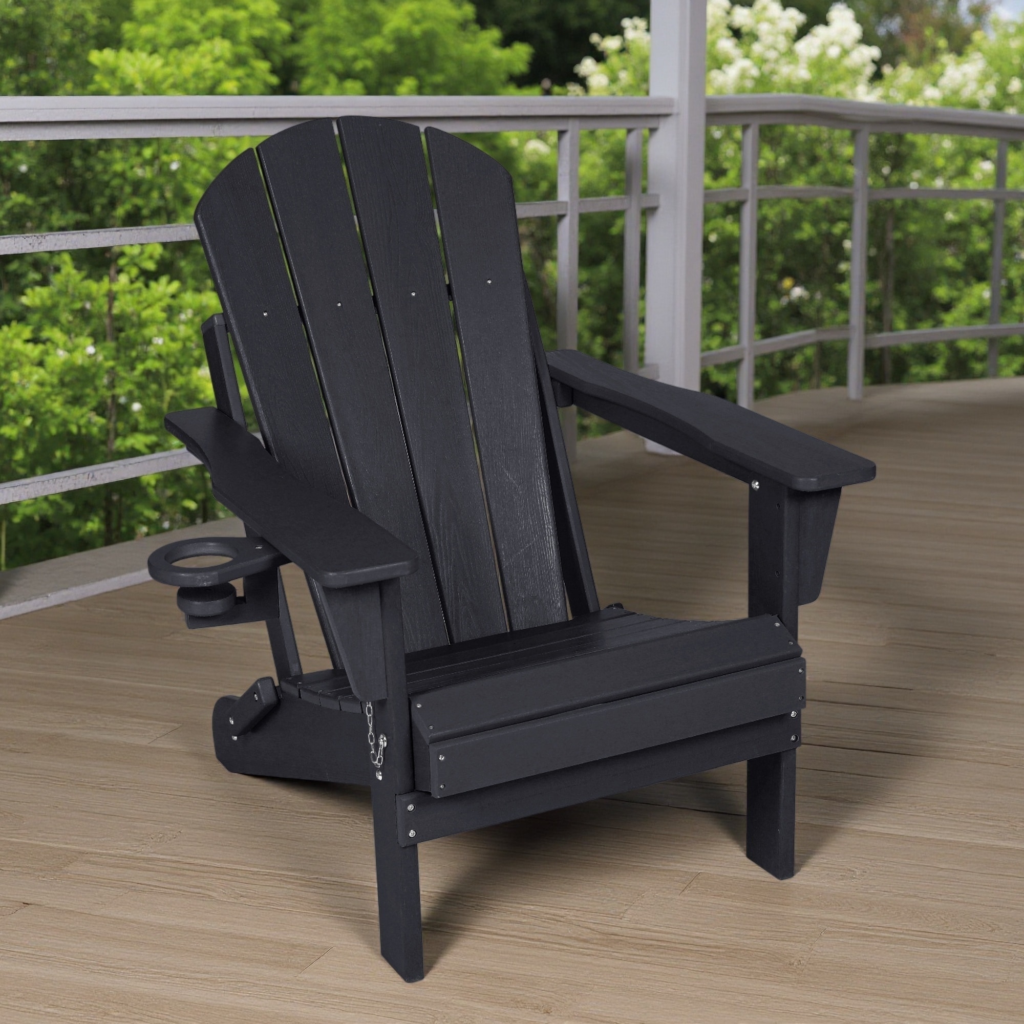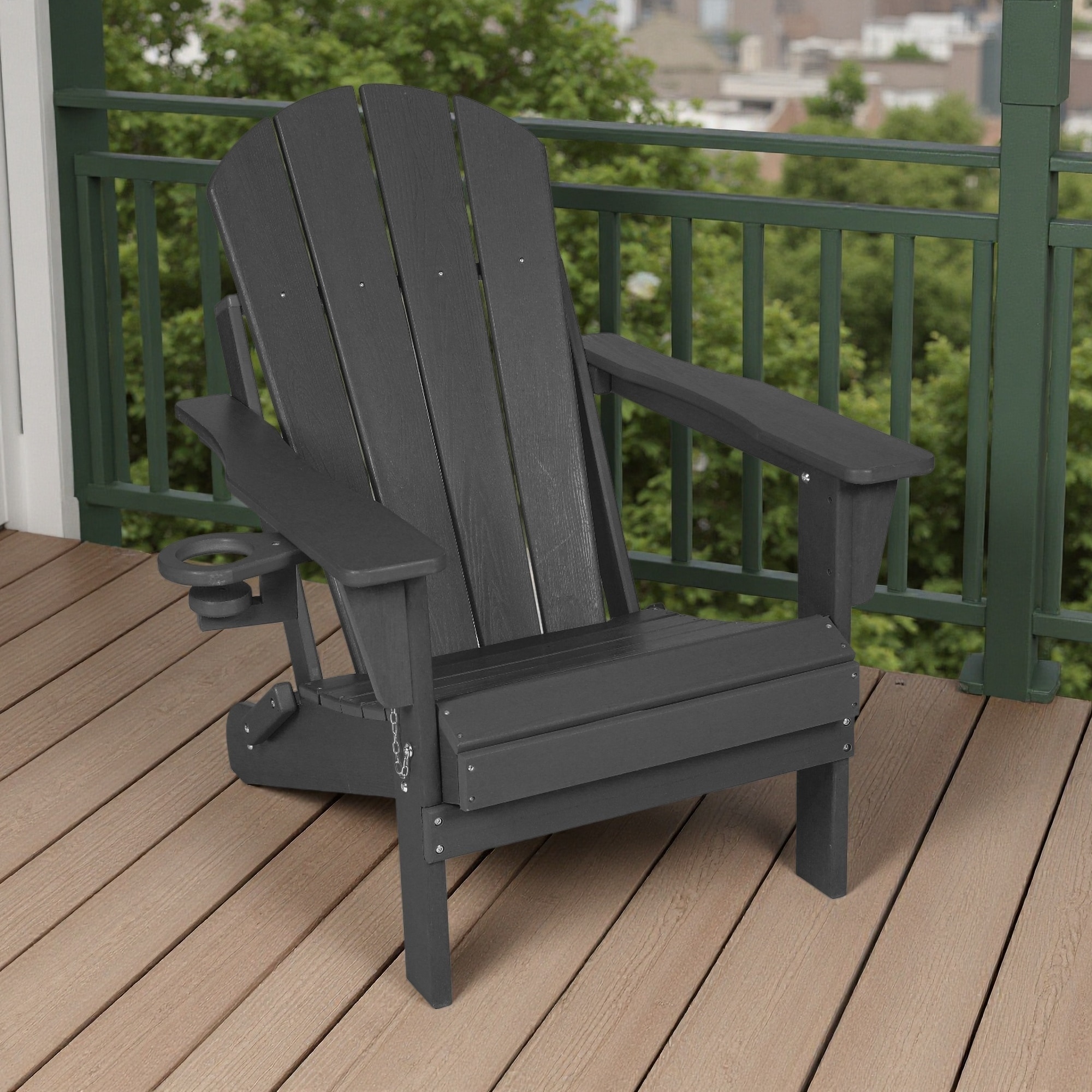 36"H Folding Adirondack Chair with Dual Cup Holder - Composite Chair with Wood Texture, Large Seat, Weather Resistant