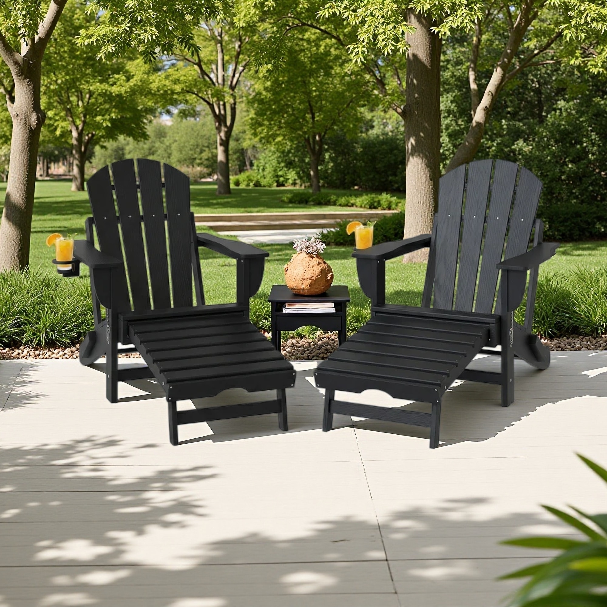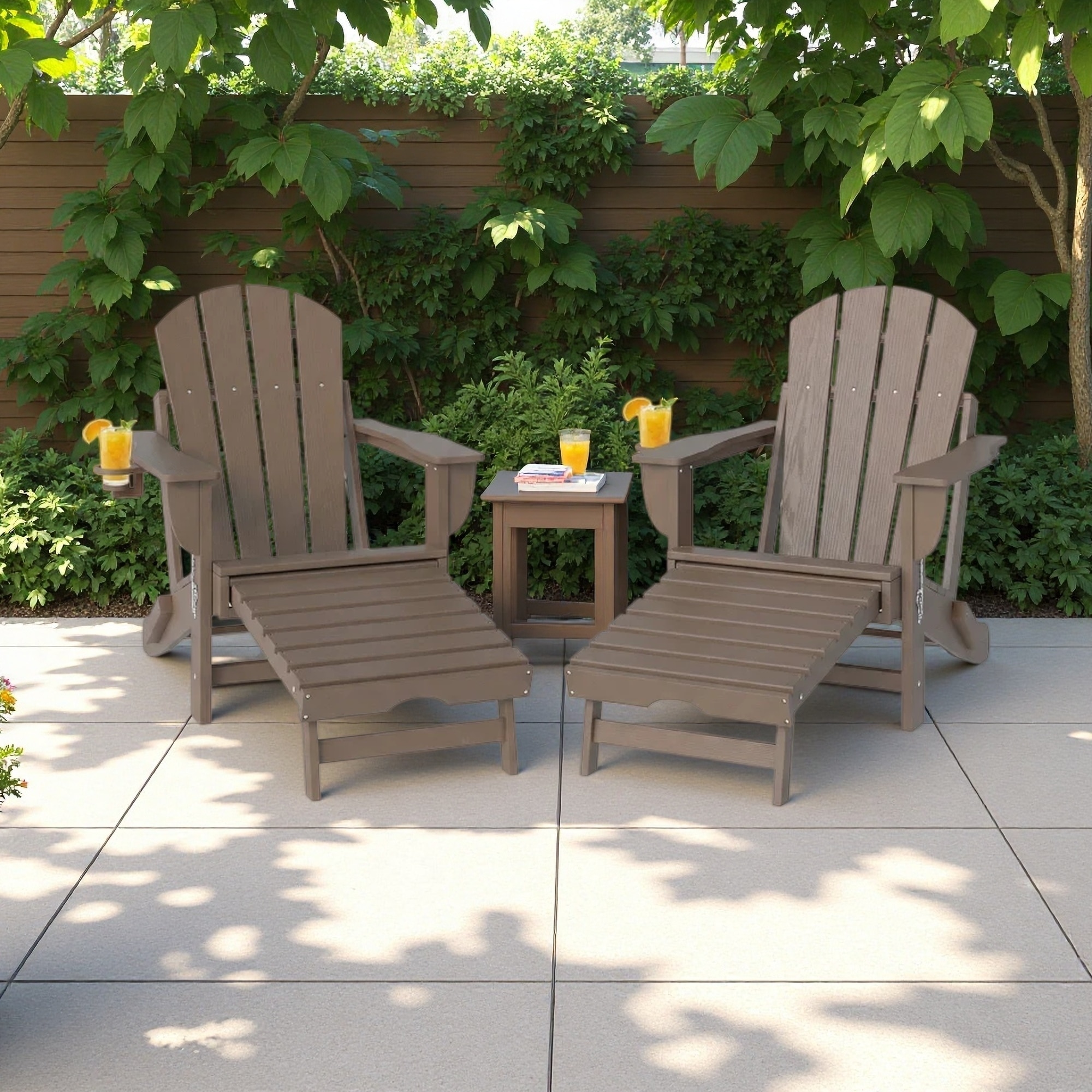 Aderson Outdoor Poly Adirondack Chair with Side Table and Ottoman 5-Piece Set
