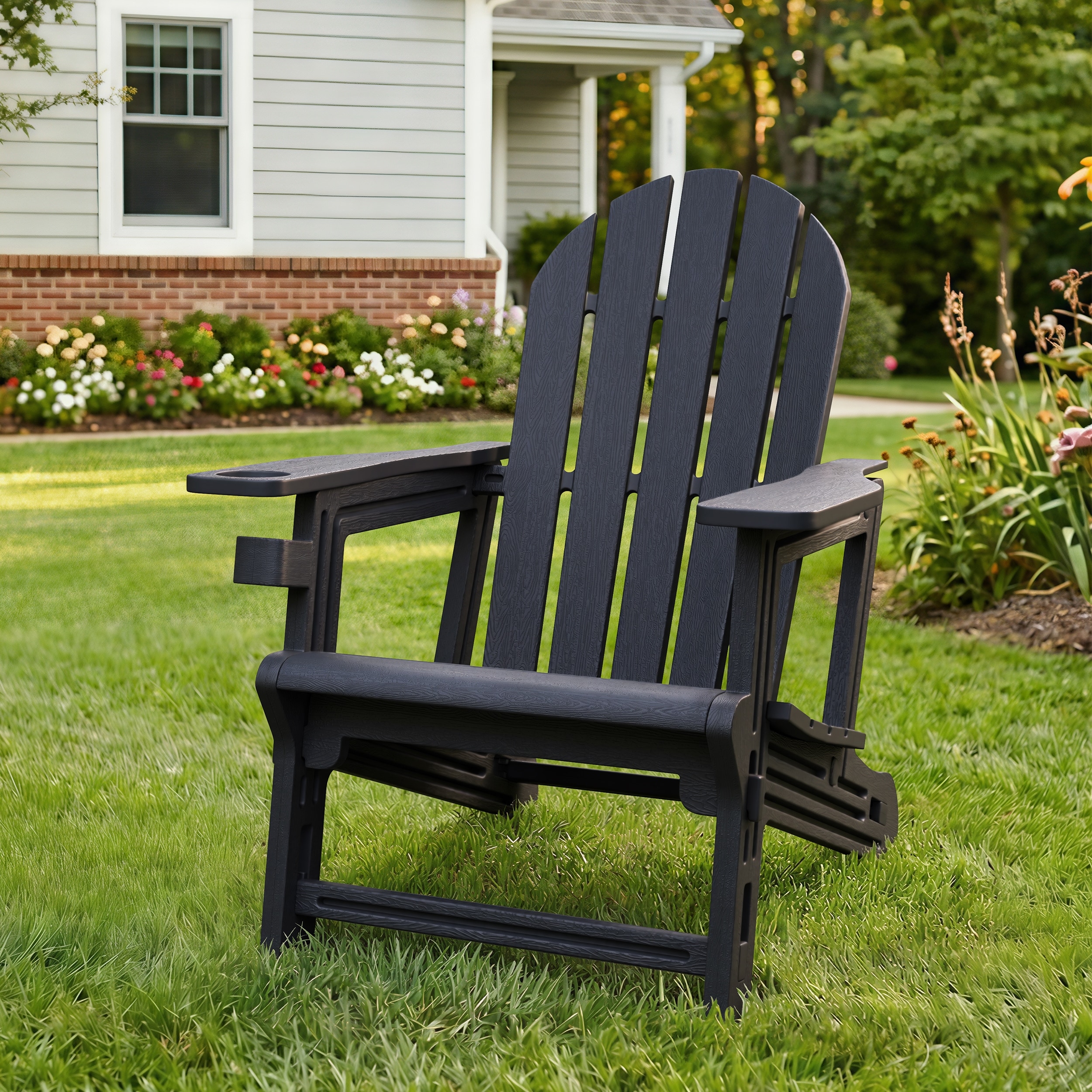 WINSOON All Weather HIPS Oversized Folding Adirondack Chair with Cup Holder