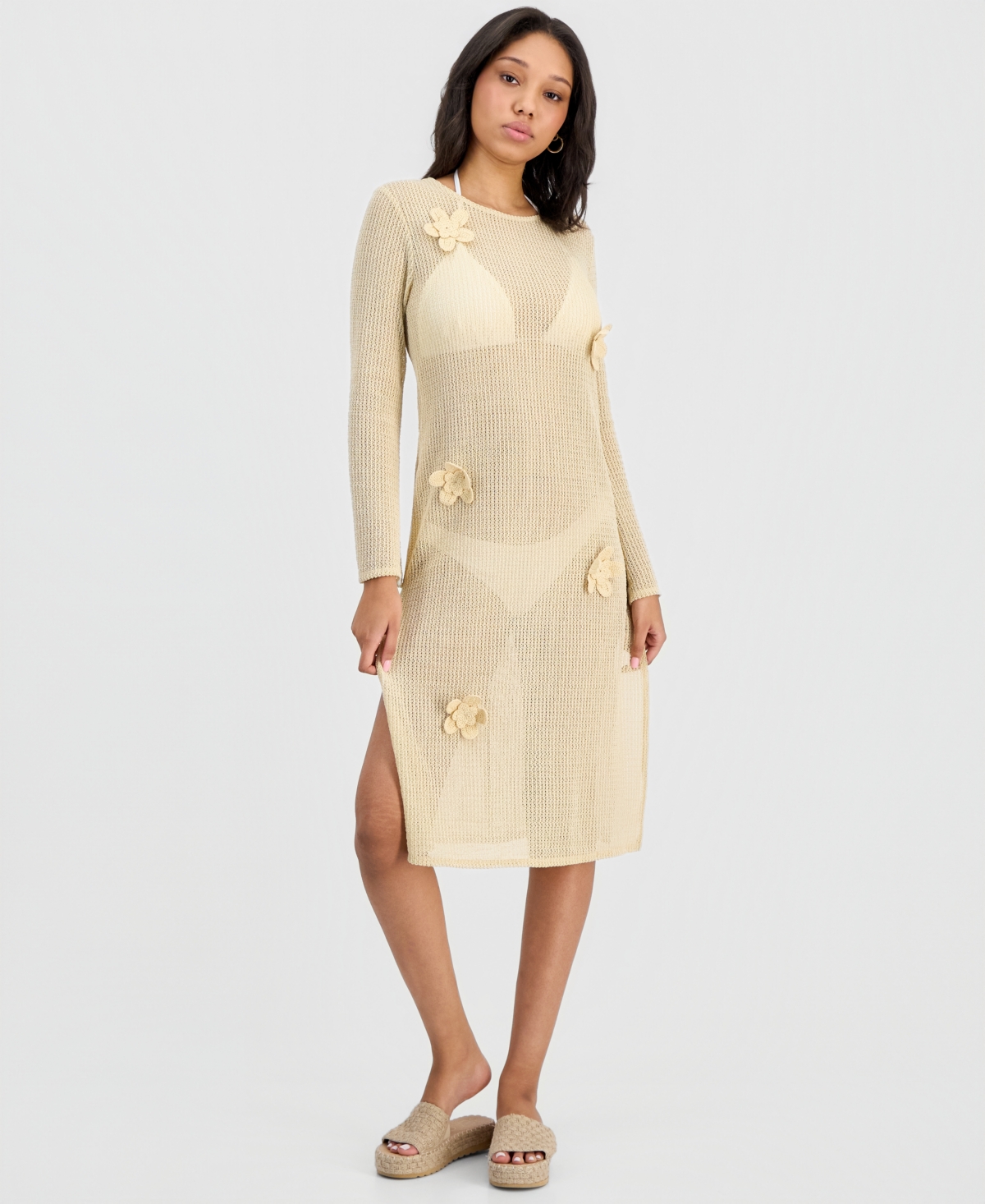Miken Juniors' Crochet Tie-Back Midi Cover-Up Dress, Macy's Exclusive - Biscotti