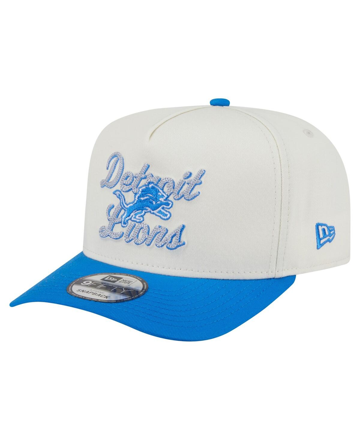 New Era Men's Cream/Blue Detroit Lions Chainstitch A-Frame 9FIFTY Adjustable Hat - Cream, Blue