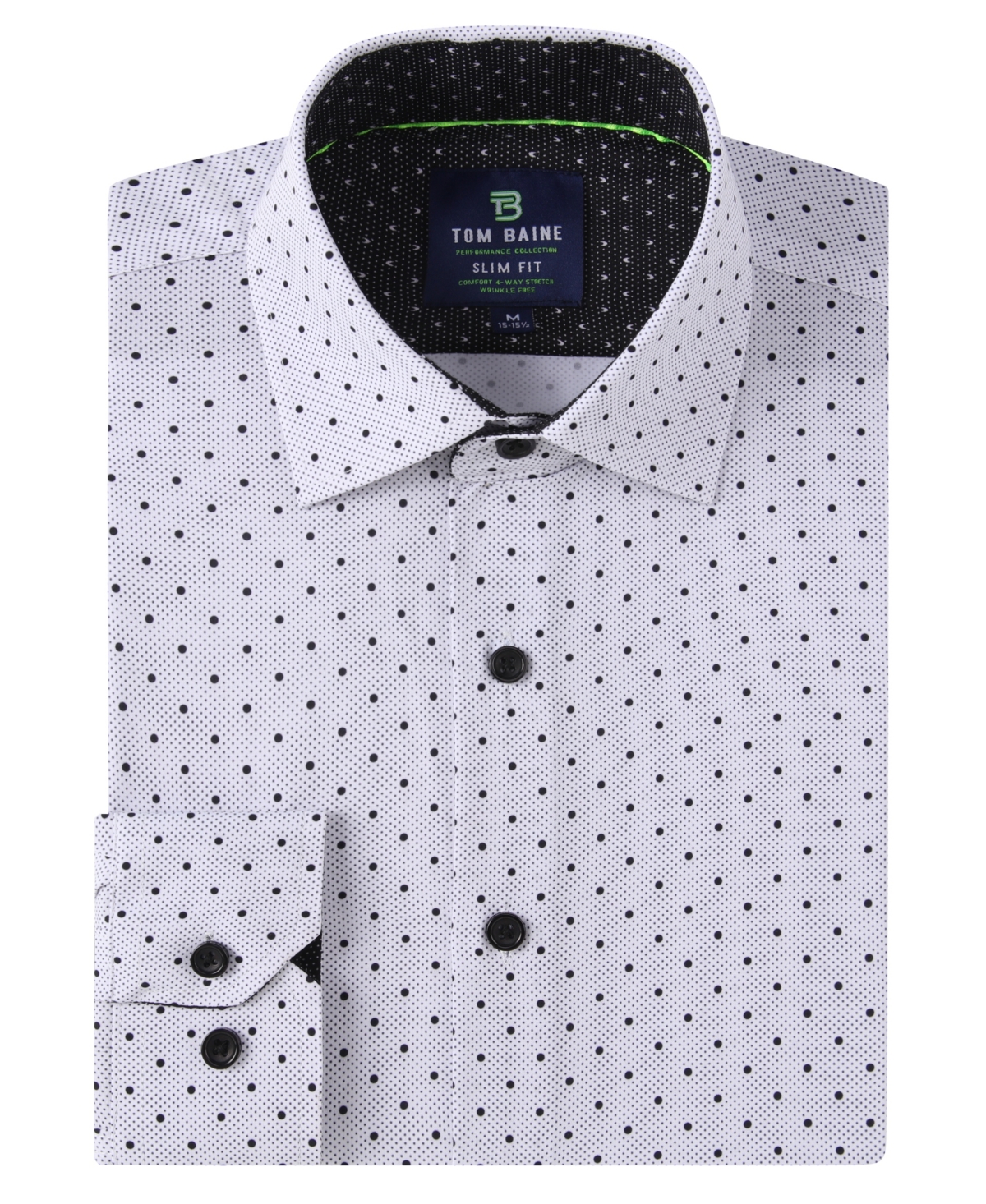 Men's Slim Fit Performance Long Sleeve Geometric Dress Shirt - White Dotts