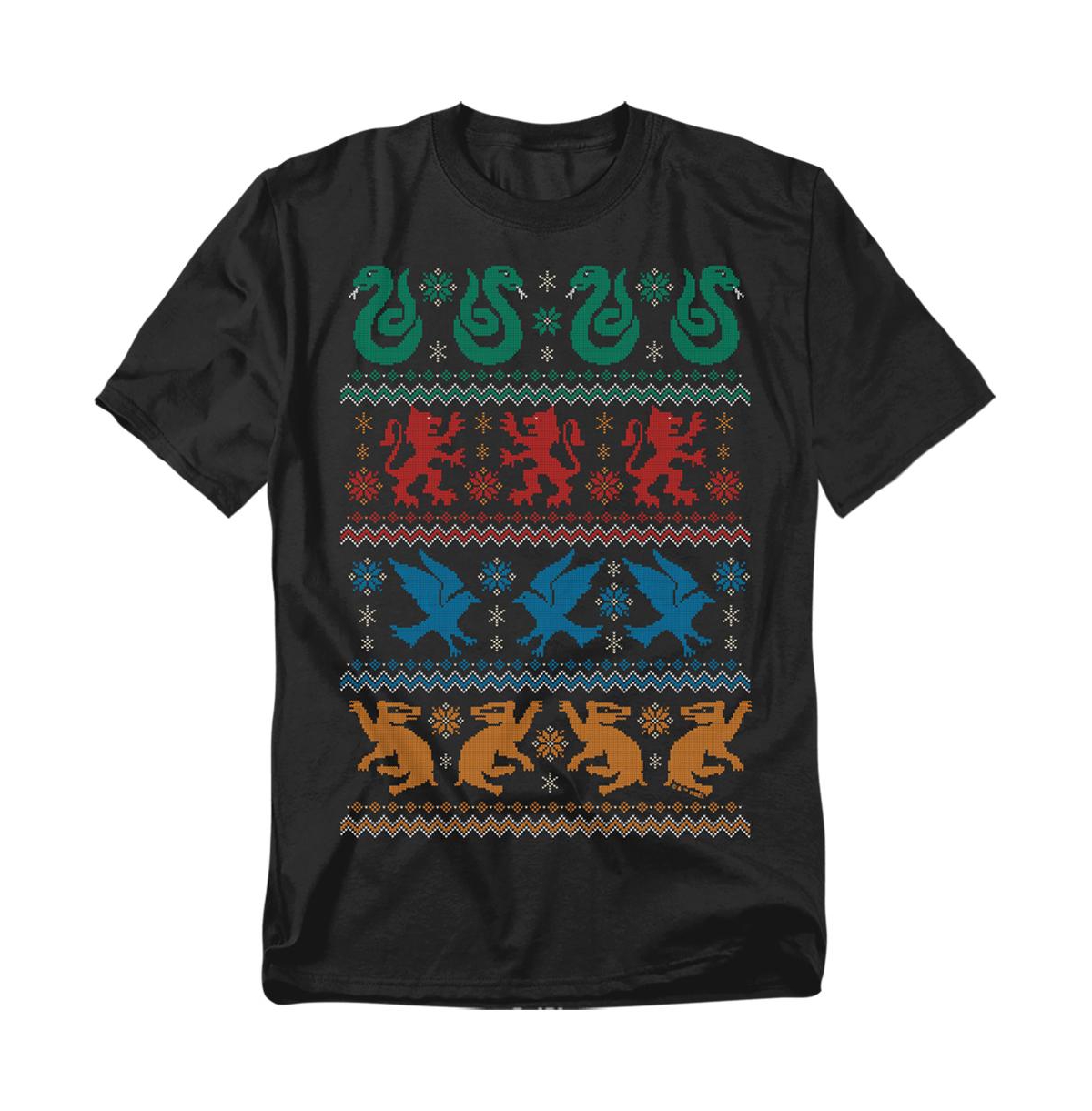 Harry Potter Big & Tall Hogwarts Houses Fair Isle Christmas Sweater T Shirt - Black
