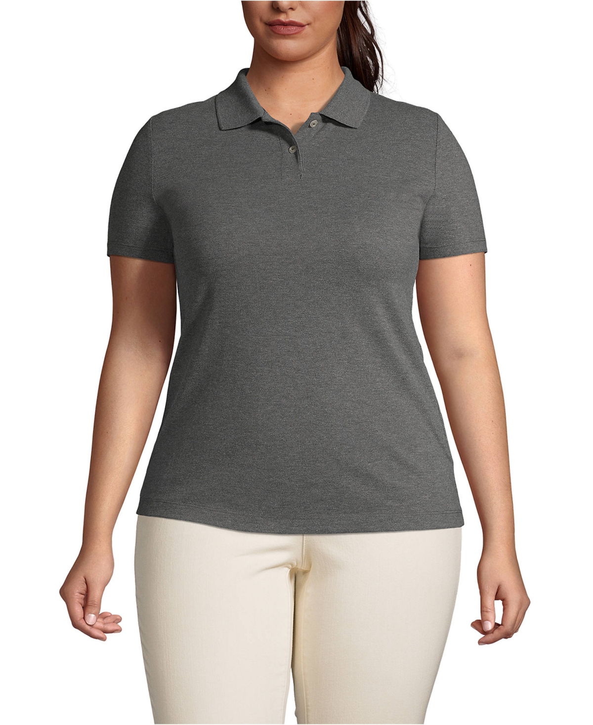 Lands' End Women's Plus Size Short Sleeve Basic Mesh Polo Shirt - Charcoal heather