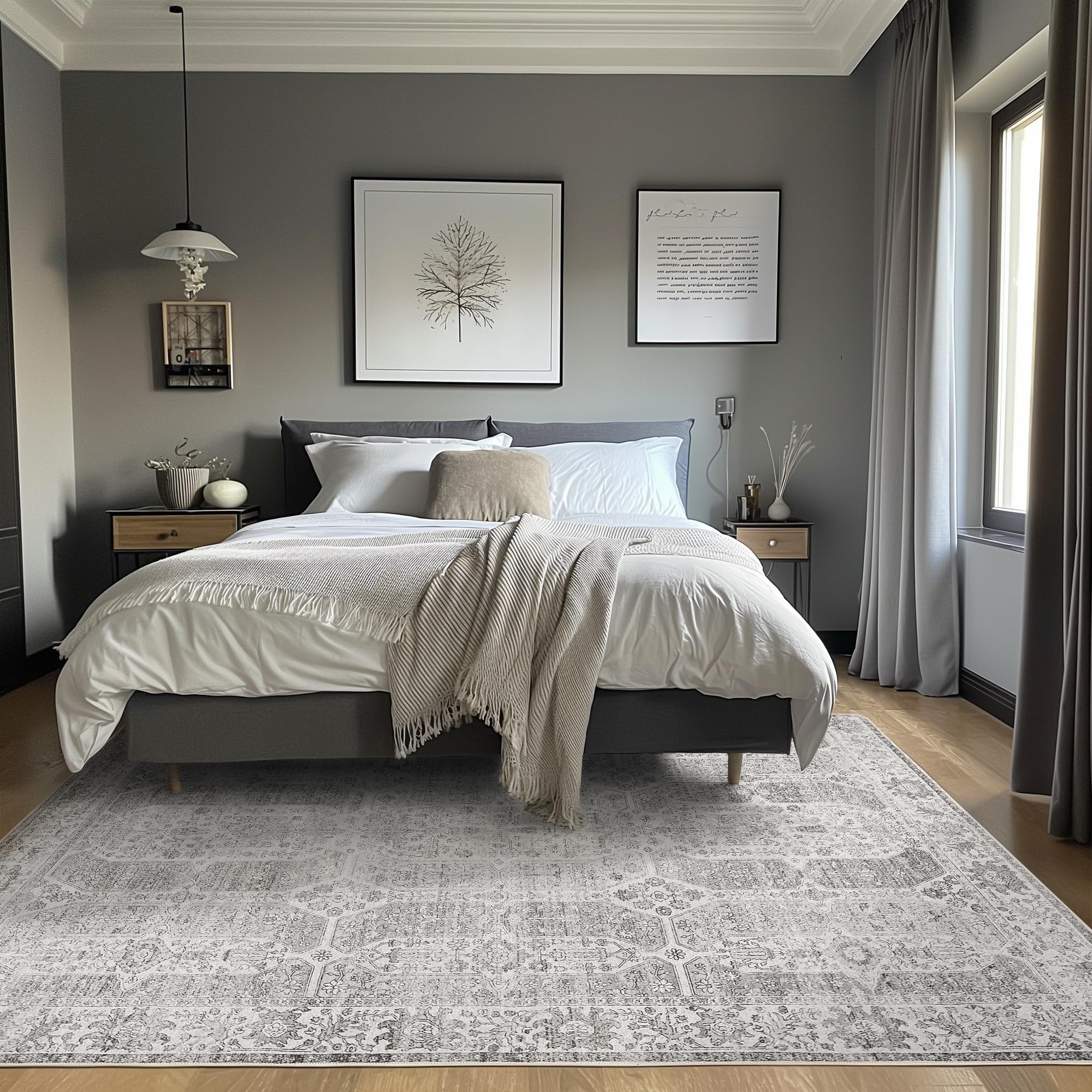 Washable Area Rug Vintage Boho Rug Low Pile Non-Slip Area Rugs Soft Foldable Indoor Carpet