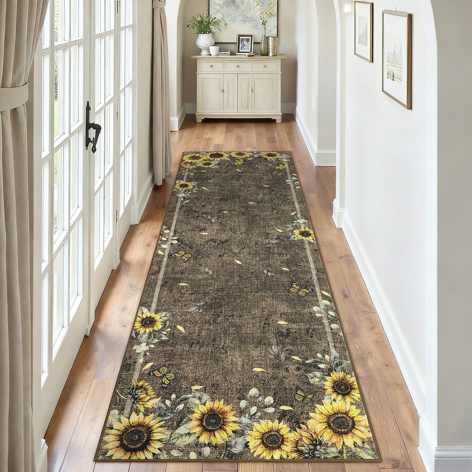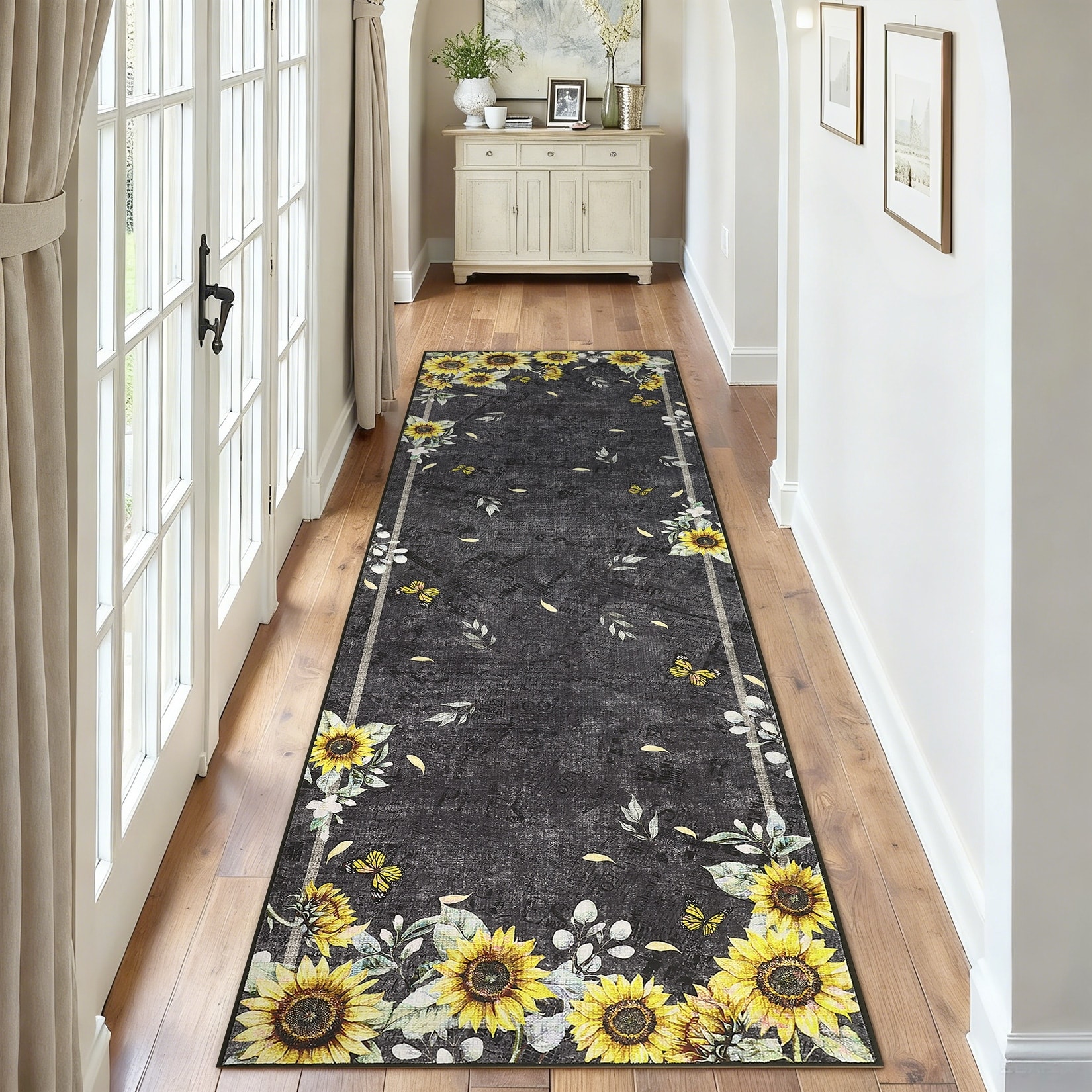Garvee Sunflower & Butterfly Pattern Area Rug, Washable Bordered Non-Slip Low Pile Accent Rugs for Living Room Bedroom