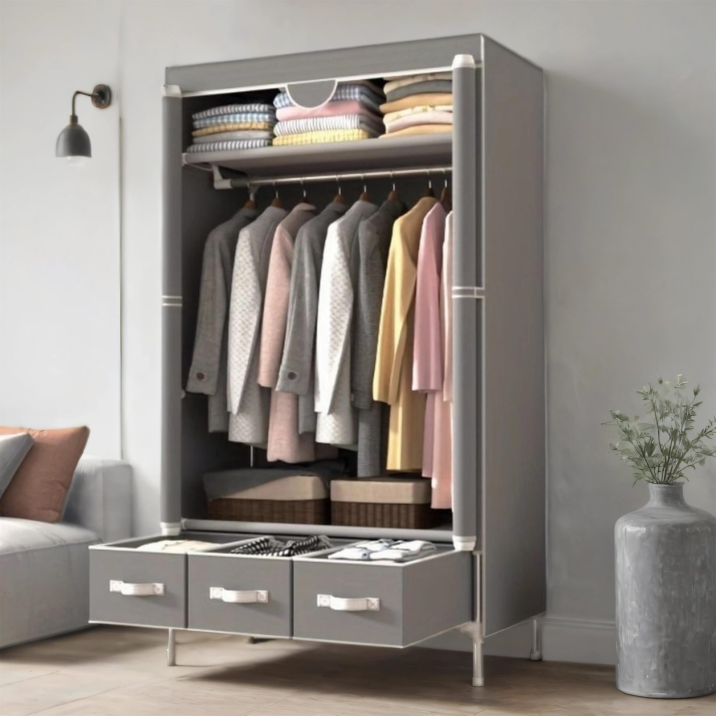 35-inch Wardrobe Closet w/ Roll-Up Door, 3 Drawers,Shelves,Hanging Rod