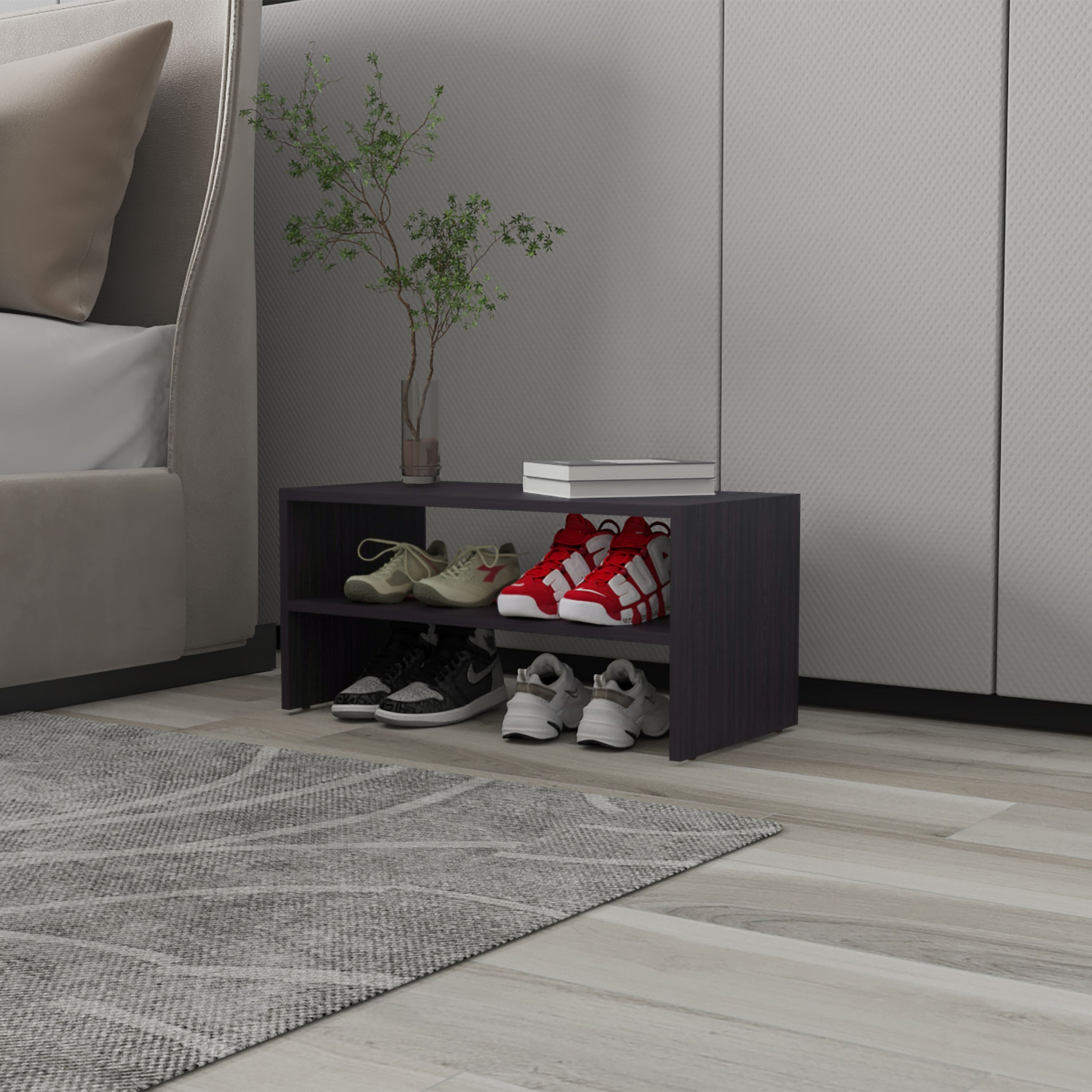 Shoe Rack, 2 Open Shelves, Low Horizontal Design, Freestanding Unit, Bedroom Use