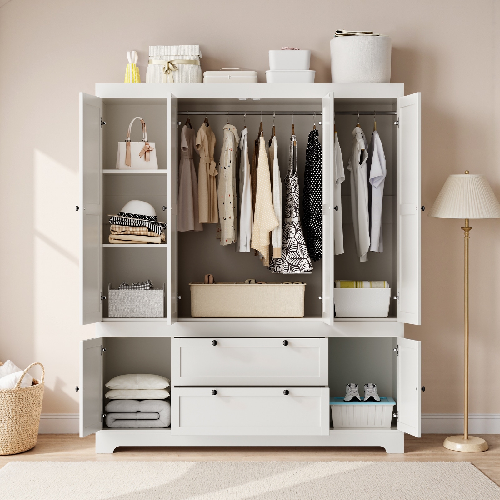 Pocassy 71" H Wardrobe Closet with Drawers with Doors and Storage