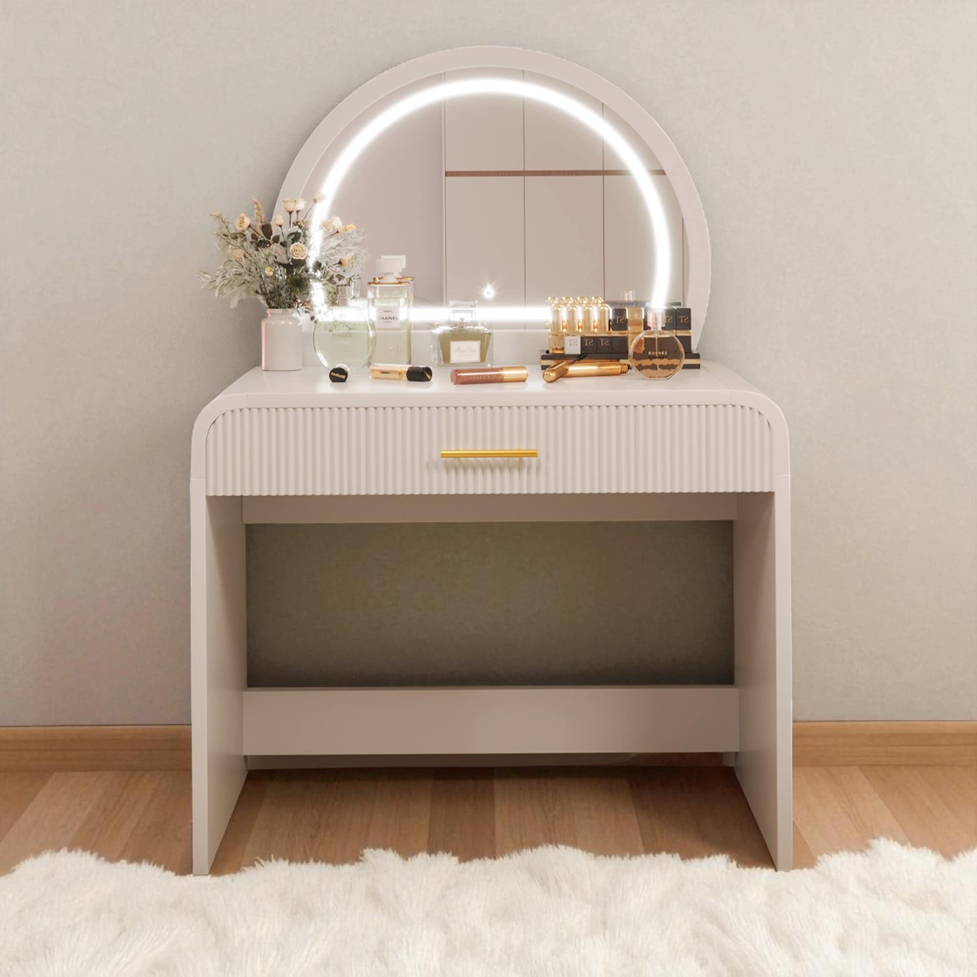 39" Vanity Table with Touch LED Mirror, Makeup Desk with Drawer and Removable Mirror for Bedroom