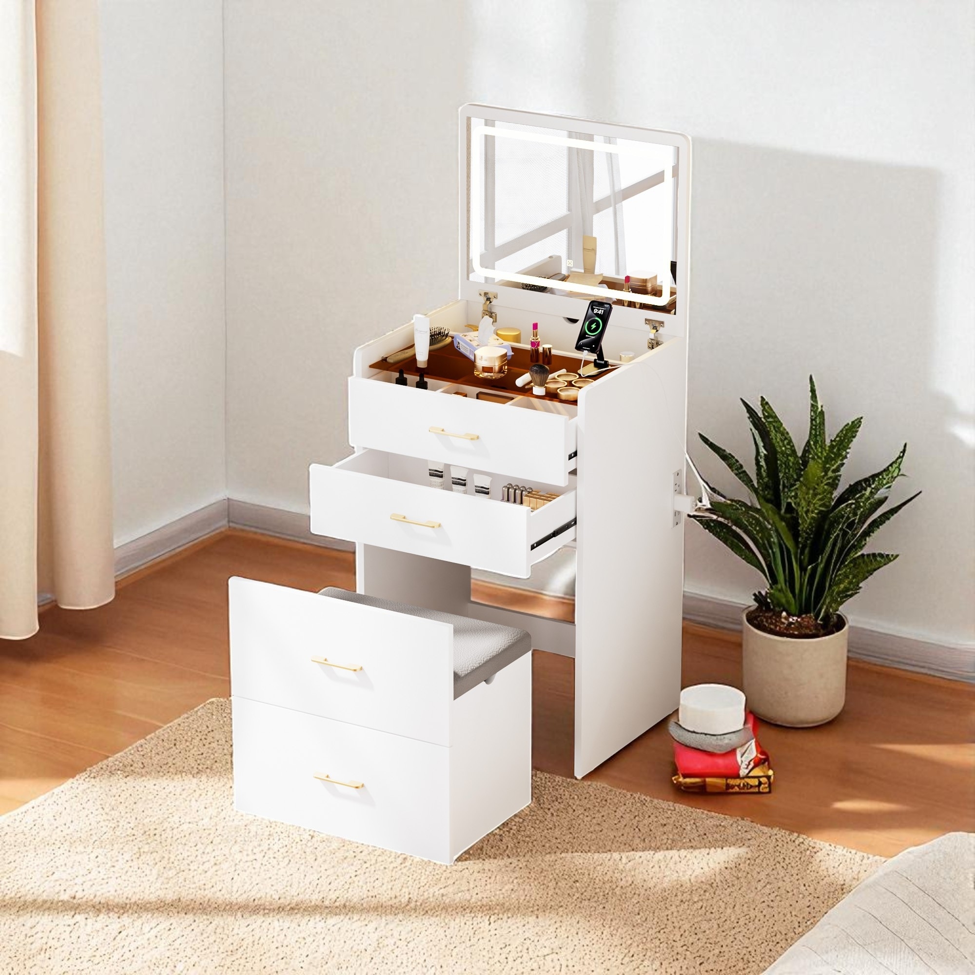3 in 1 Vanity Desk with Flip Mirror, Glass Top Makeup Table with Charging Station, 3 Drawers & Stool for Bedroom