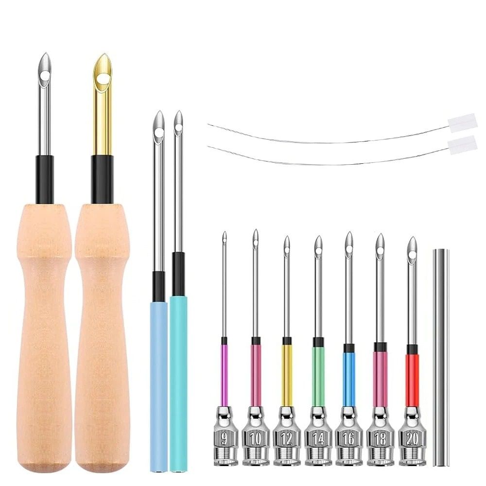 14 Piece Wooden Punch Needle Embroidery Kit Adjustable Set 14 Piece Wooden Punch Needle Embroidery Kit Adjustable Set
