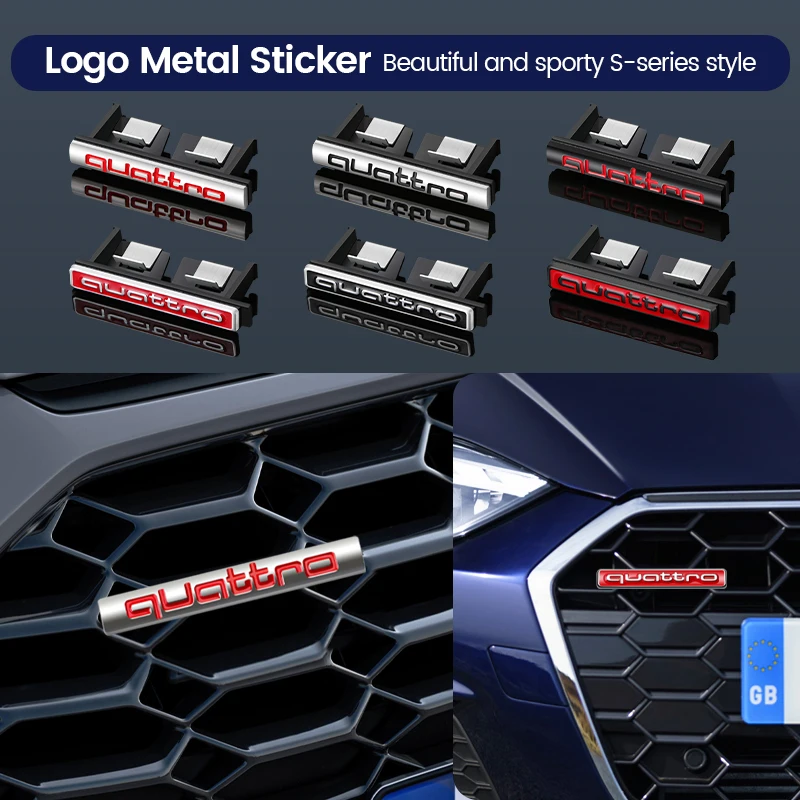 Quattro Logo Metal, Front Grill Badge, Car Emblem Sticker Decals silver Black grille quattro