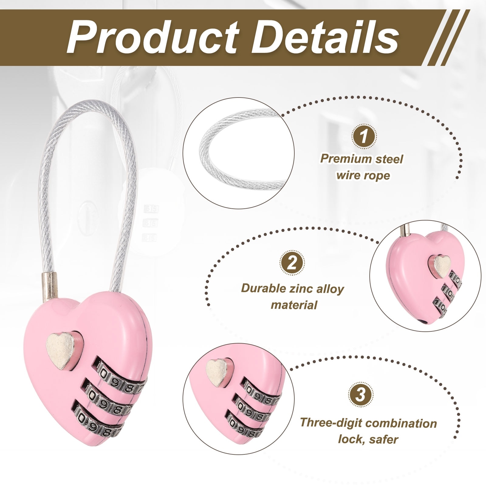 Pack Combination Padlock, Zinc Alloy Digit Password Heart Shaped Cable Luggage Combo Lock, Outdoor Keyless Lock [Black]