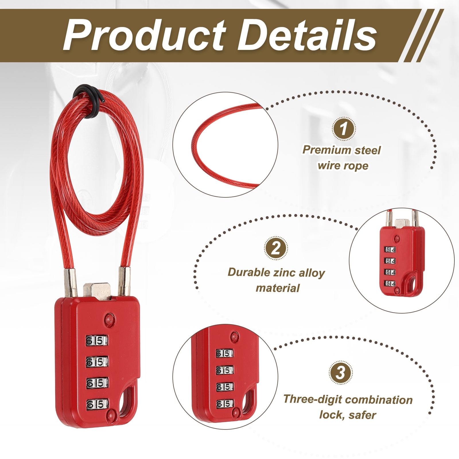 Pack Combination Padlock, Zinc Alloy Digit Password Cable Luggage Combo Lock for Suitcase/Gym Locker/Backpack