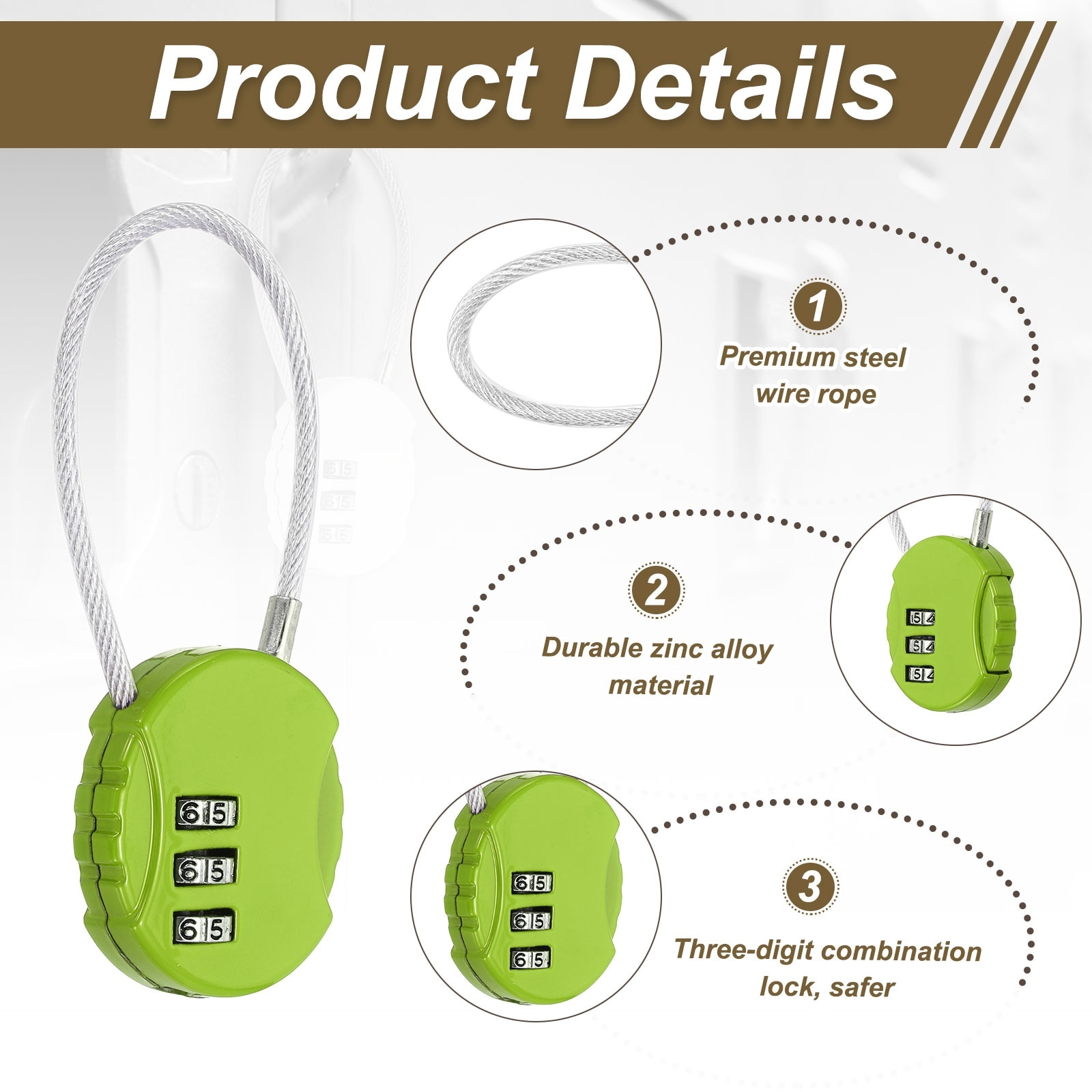 Pack Combination Padlock, Zinc Alloy 3 Digit Password Round Shaped Cable Luggage Combo Lock for Suitcase