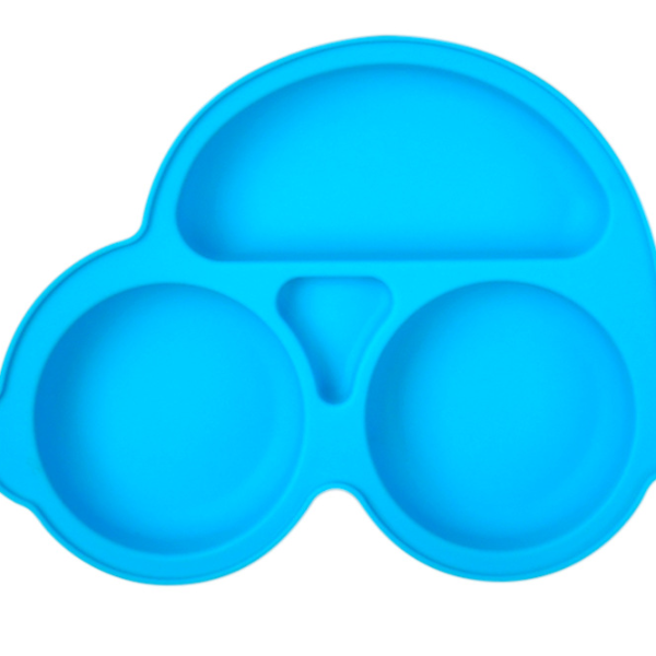 Safe Silicone Dining Plate For Babies: Cartoon Design, Suction Toddler Training Tableware Kids Feeding Bowls Blue